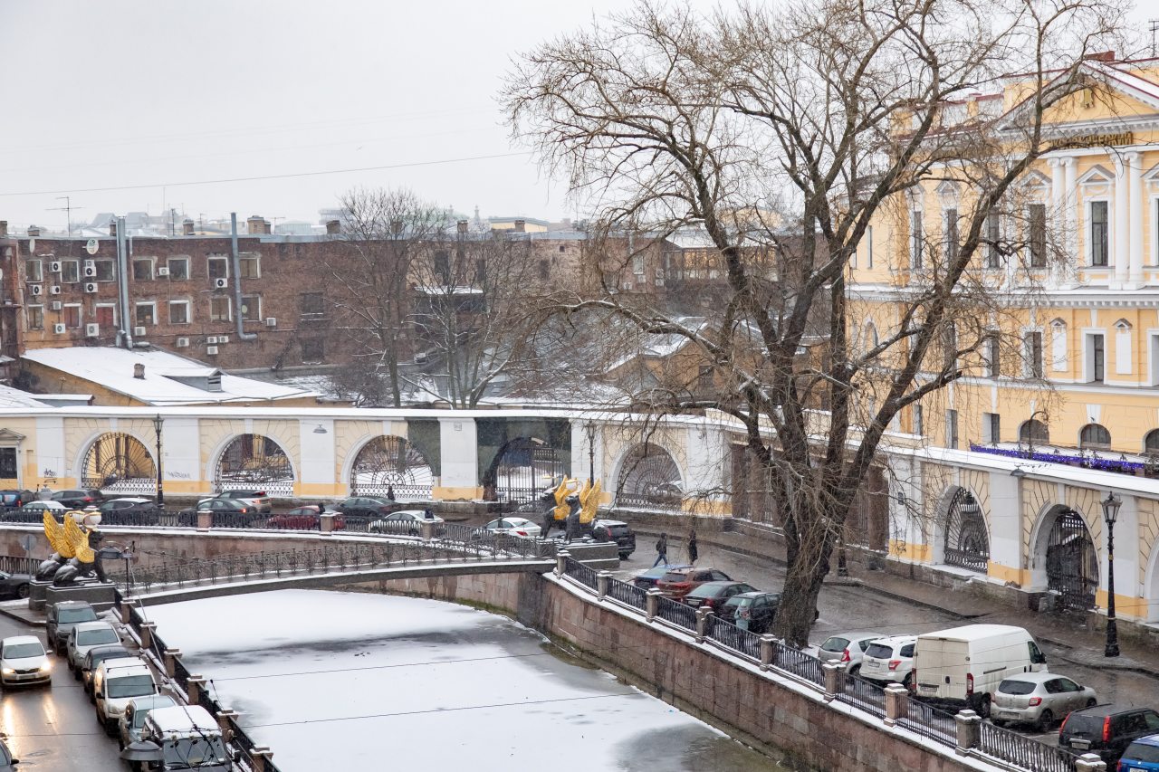Вид из окна тоже хорош: на канал Грибоедова. Расположение удобное, за Казанским Собором, близко ко всем достопримечательностям