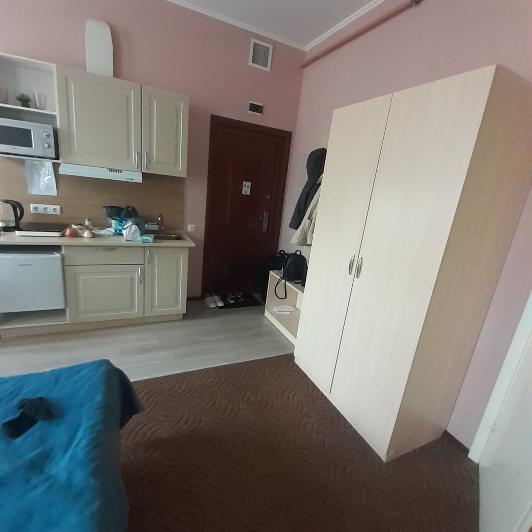 Номер был студио. Удобно. Можно приготовить завтрак. В номере чисто, все необходимое есть: шампуни, мыло, фен, посуда, микроволновка, чайник, холодильник. Даже чай и сахар))
