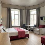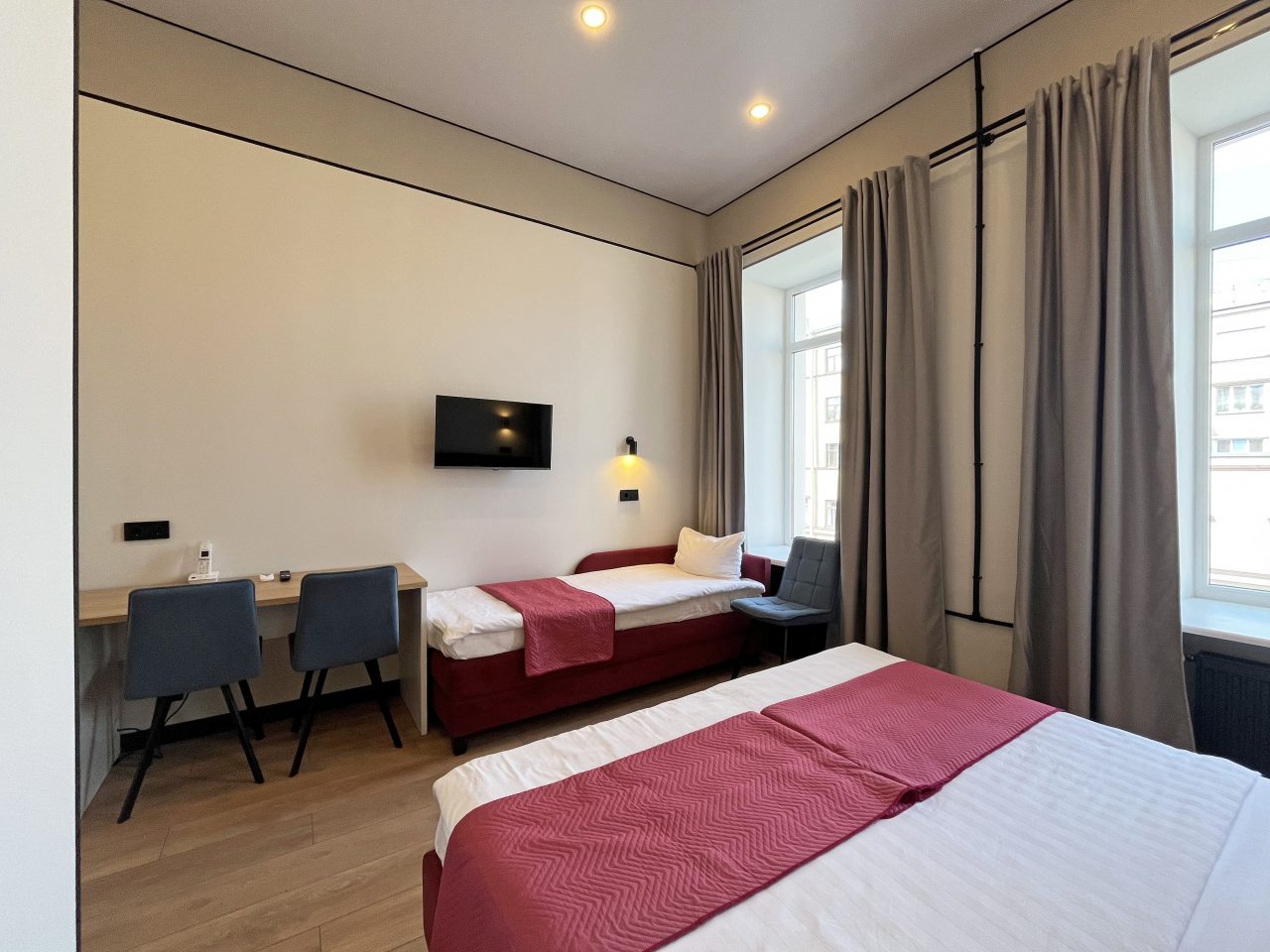 В отеле проживали с 17 по 21.10.2024 в полулюксе. В номере есть чайник, холодильник, микроволновая печь, своя ванная комната. В номере чисто, мусор убирали каждый день. Утром завтраки: каша, хлопья, мюсли, бутерброды. Отель находится на Невском проспекте, в 5 минутах ходьбы от Московского вокзала. Рядом с отелем магазины, столовые, автобусы останавливаются около отеля. Вежливый персонал. Нам понравилось все, рекомендую!