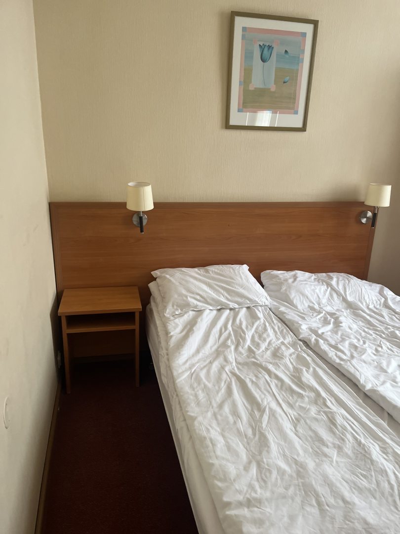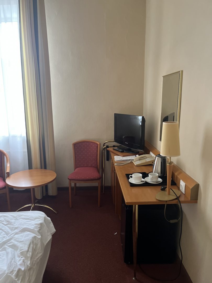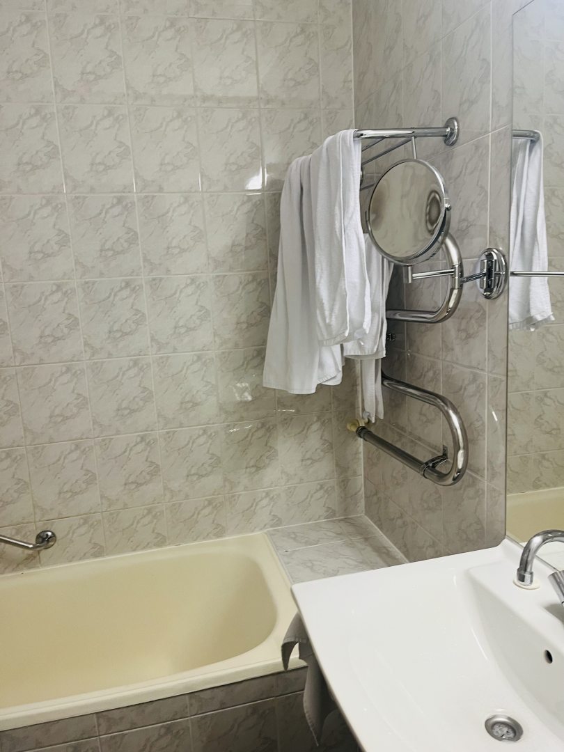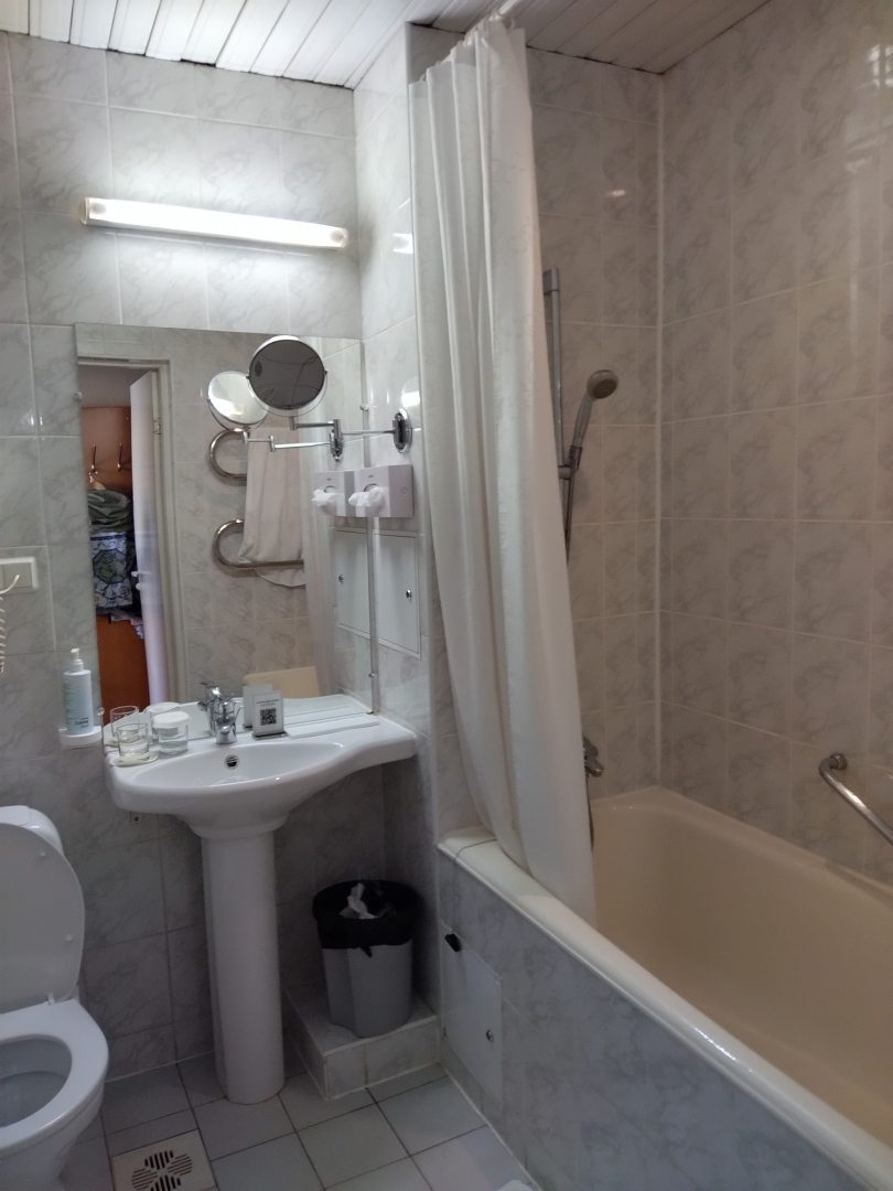 Из недостатков: 1. Сдавая вещи столкнулись с женщиной принимавшей чемоданы, услышала в ответ на просьбу-поставить внизу, тк тяжелое поднимать не могу. Инв 1 группы. Ответ- а оно мне надо. 2. Уборка: за неделю постельное не поменяли ни разу, ванную и туалет 3 дня не мыли, видимо тк мы находились в номере??? Только пылесосили и выбрасывали мусор. 2.1 забывали оставить воду, чай, кофе, приходилось напоминать 3. Поселили в глубине помещения да еще и лестница, хоть и не большая, но для меня тяжеловата тем более с чемоданом.