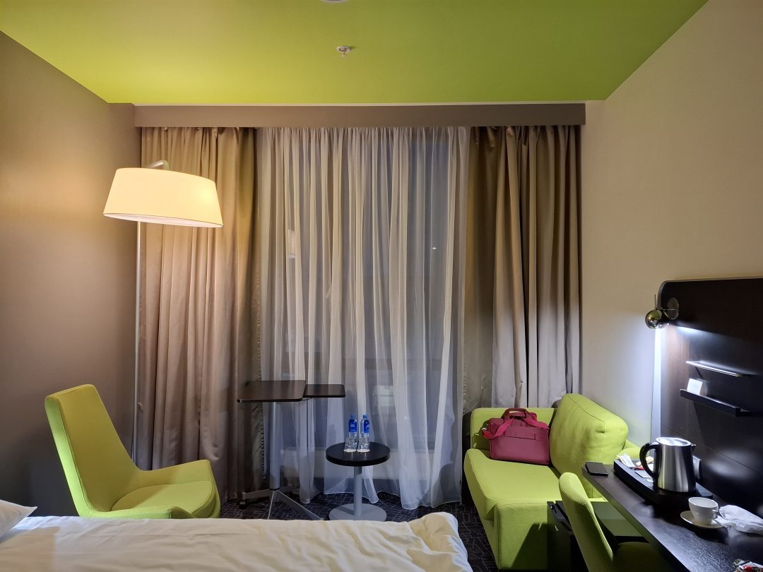Понравилось, что номер очень комфортен в качестве места для сна и тихой работы. Понравился раздвижной прикроватный столик, на который удобно одновременно и чай-кофе, и ноут. Понравилось что есть кресла, кулер на этаже, чай-кофе в номере, и возможность поесть-выпить чуть не круглосуточно. (Ещё бы были халаты - вообще бы супер). Находится буквально сразу через дорогу от выхода из аэропорта, рядом с этим выходом круглосуточный "перекресток". Идеально комфортный, самое то для расслабиться с дороги. Понравилось, что в гостинице можно оставить вещи - нам было удобно, приехав ночью и переночевав, к концу дня туда же вернуться за вещами и сразу на самолёт. Освещение комфортное, регулируется.