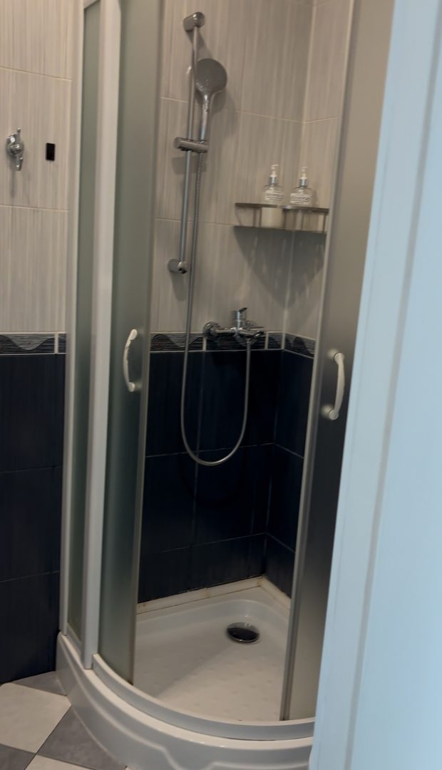 Идеальная ванная комната: Душевая кабина, хороший напор воды. Предоставлены шампунь, гель для душа и крем для тела. Отдельный плюс за мощный фен и набор чистых полотенец (для тела, рук и даже для ног!).