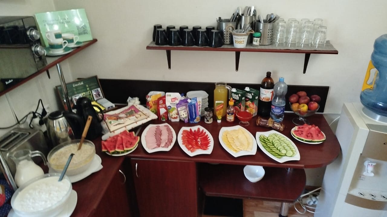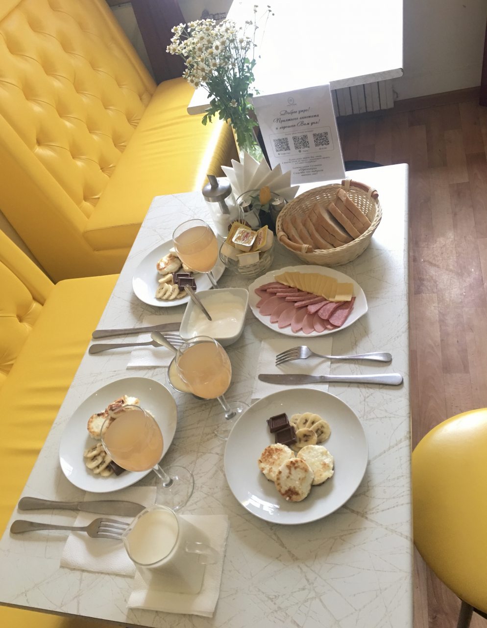 Бронировали номер на 3 персоны. У нас был поздний заезд, оплачивали отдельно. Выдали ключи от номера на первом этаже. Очень повезло. Предложили легкий перекус, что очень любезно) Завтраки тоже заказывали за дополнительную плату, при чем удобно, что время выбираешь сам. Есть утюг, фен.