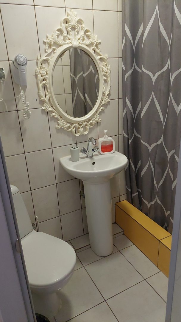 В гостинице есть все необходимое.Душ и туалет в номере.Куллер с горячей и холодной водой в коридоре.В гостинице чисто.Есть кухонный уголок: микроволновка,чайник, посуда.У нас был двухуровневый номер..Не очень удобно спать на 2-ом этаже.Хоть есть вентилятор,но очень жарко.При открытом окне очень шумно, потому что проезжая часть.На 2- ом этаже выпрямиться в полный рост нельзя.Мы приходили только ночевать.Поэтому нас устроила данная гостиница.Удобное расположение гостиницы.Невский проспект недалеко.