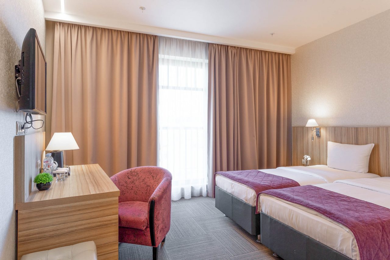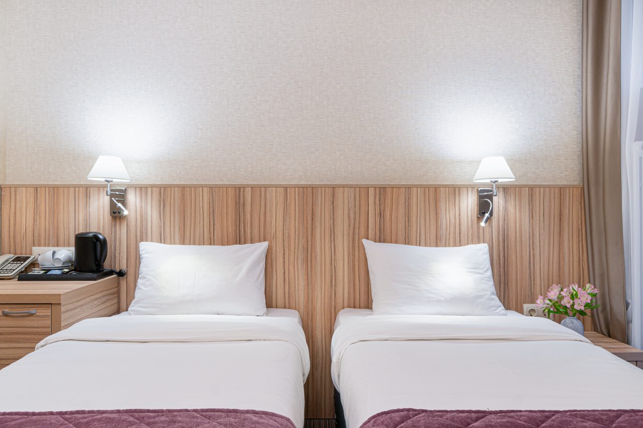 Хороший отель, чисто, постель и полотенце как новые, не застиранные. Есть чай, кофе и вода в стандартном номере.