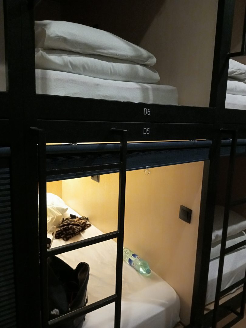 Из недостатков: поддувало с окон и в спальне и на кухне, а одеяло тонкое, в капсуле мне не хватило полочки, положить свои мелочи, пришлось тут жена кровати всё в кучу складывать, в комнате а углу можно поставить стол, сесть накраситься или что-то поделать, люди в туалете вытираются видимо сразу рулоном, это конечно вопросы не к хостелу, а к проживающим, к их культуре