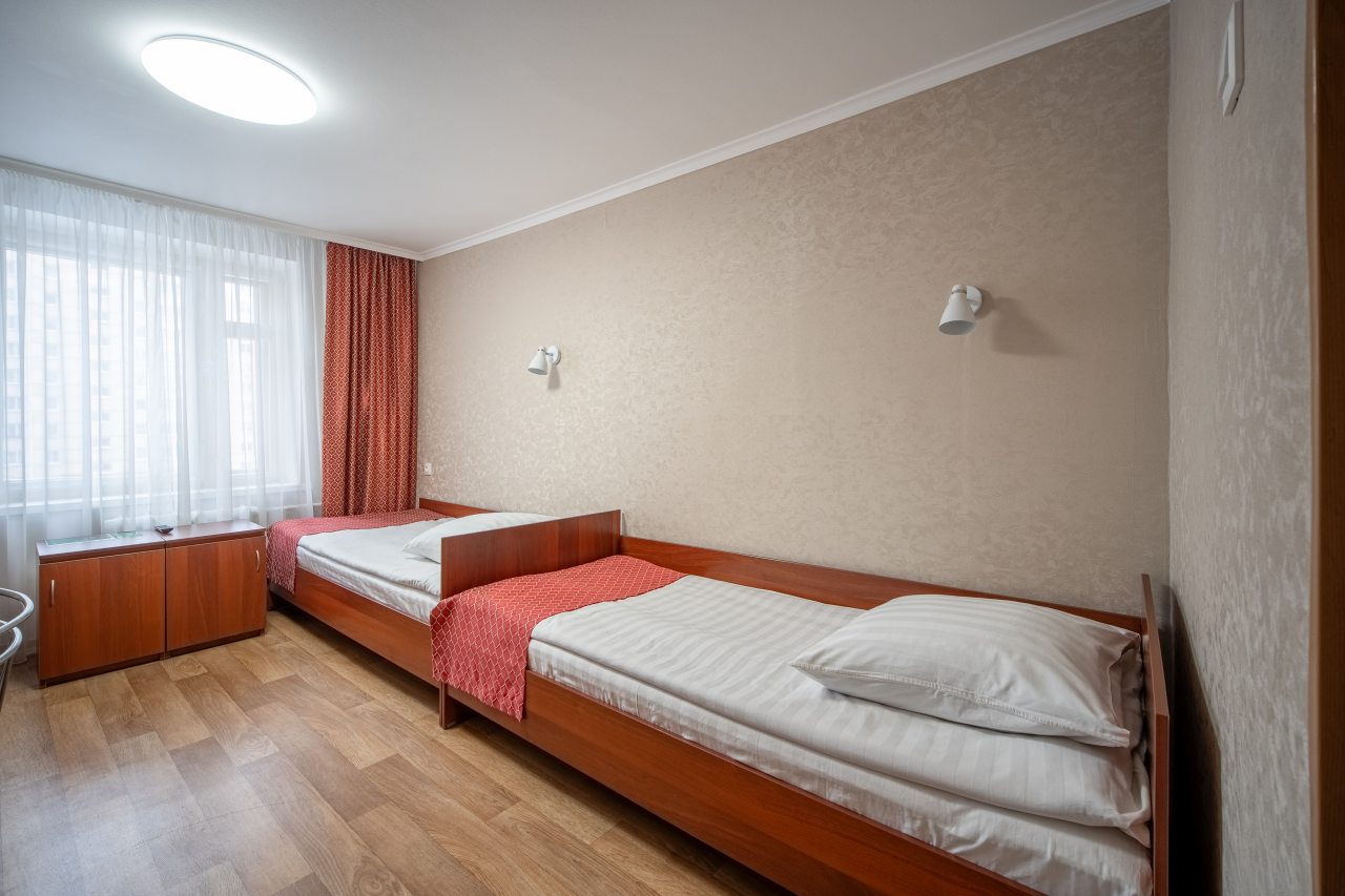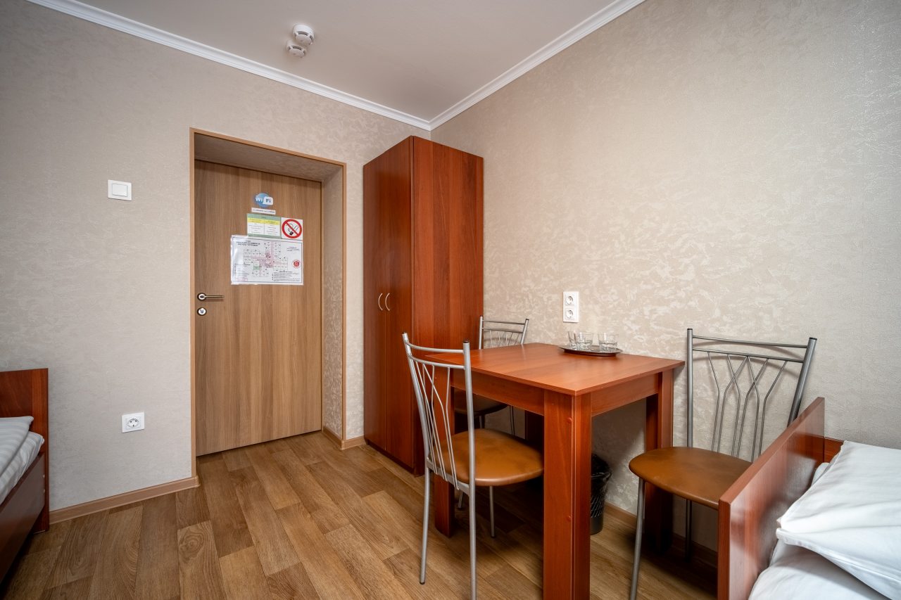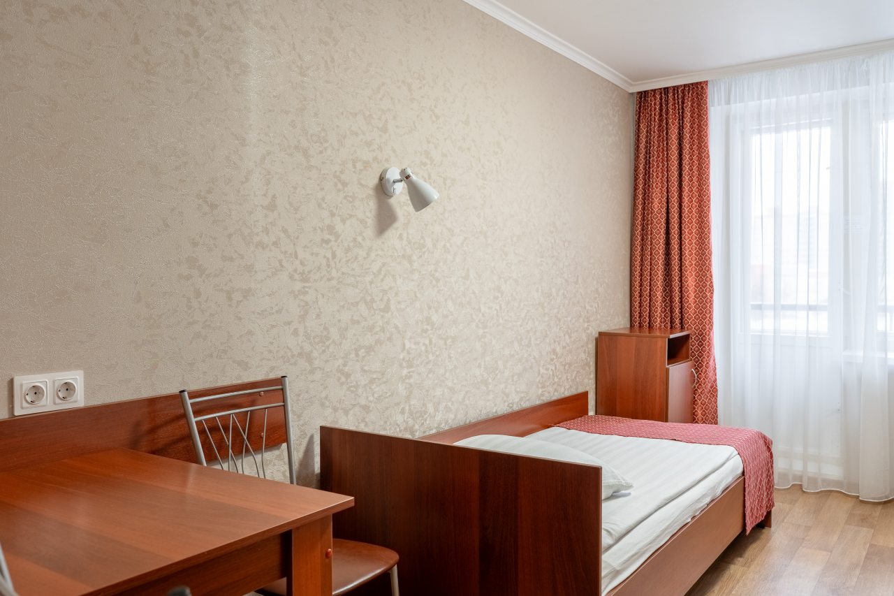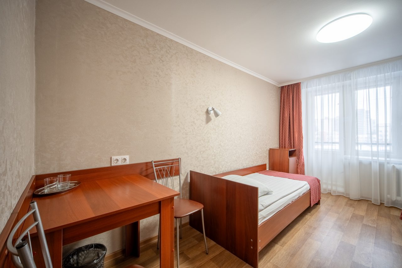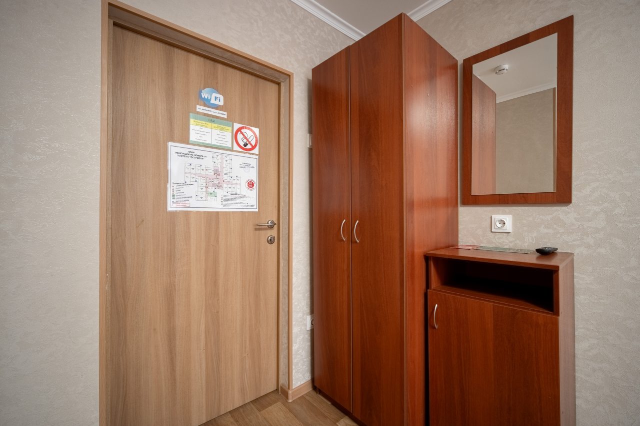 Отличный хостел. Распологаеться рядом с метро (очень удобно). Рядом 3 детские площадки, очень вкусное и не дорогое кафе, магазины рядом. В общежитии на 3 этаже, лифт работает (2 лифта). Вход через пост охраны. Очень, очень чисто. Белоснежное белье и полотенца. Убирают в номере каждый день, постель и полотенце каждые 2 дня. У номеров есть выход на балкон. Есть гигиенические комнаты, стоят везде дозатор с мылом, бумажными полотенцами, есть тазик для стирки. На кухне столы со скатертью, холодильниками, микр печами, есть вся посуда, плита. В номерах телевизор, стол, стаканы для воды, зеркало, кровати с очень удобными матрасами и подушками. Есть дополнительно тёплые покрывала в шкафу и обогреватель. Администрация спокойная, вежливая, добрая всегда готовы помочь. В холле есть зеркала и диваны, автомат с кофе и перекусами.