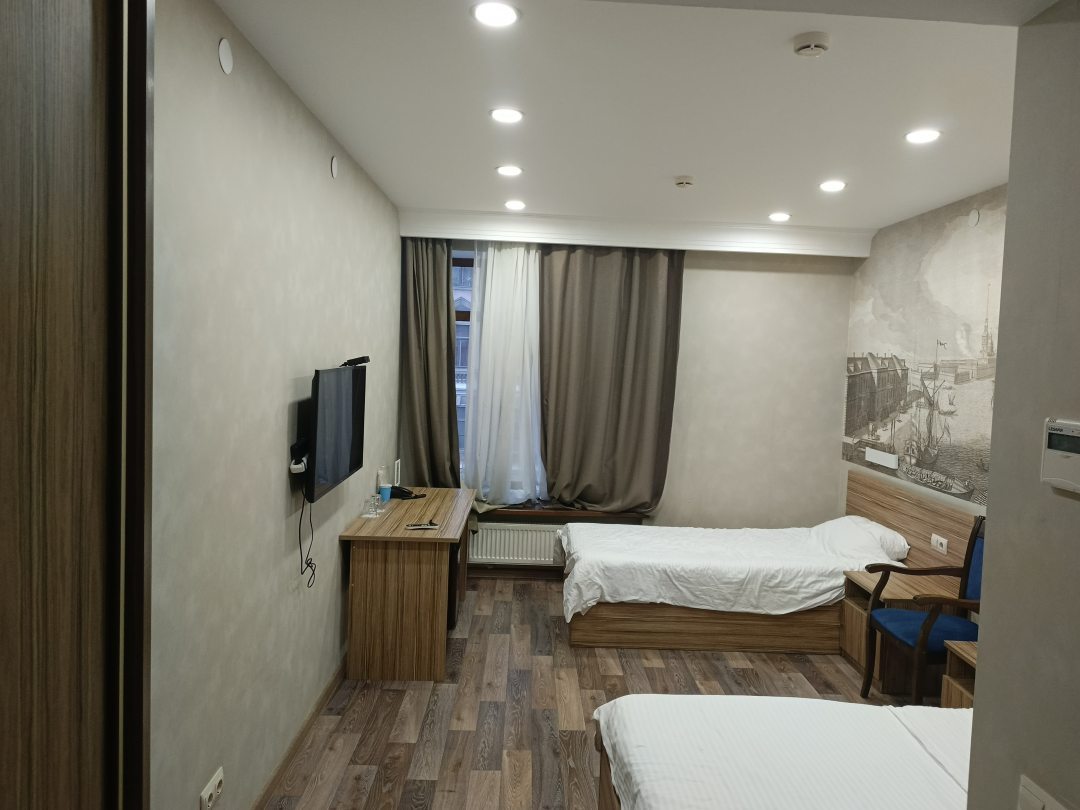 Отель среднего класса с лояльными ценами на номера. В номере чисто, матрасы пружинные , белье чистое а также две кровати которые не сдвигаются, это обязательное условие отеля, выдается набор полотенец, тапочки одноразовые, мыло, шампунь и гель для душа.В отеле есть бизнес ланч, но это отдельная организация которая готовит исключительно завтрак и бизнес ланч, работают до 17.00. На этаже есть кулер с водой, в номере нет микроволновки и чайника электрического . При входе в отель вейдинги с вкусняшками. В целом всё работает, тепло и уютно, напротив отеля остановка общественного транспорта и до метро ехать 10 минут.