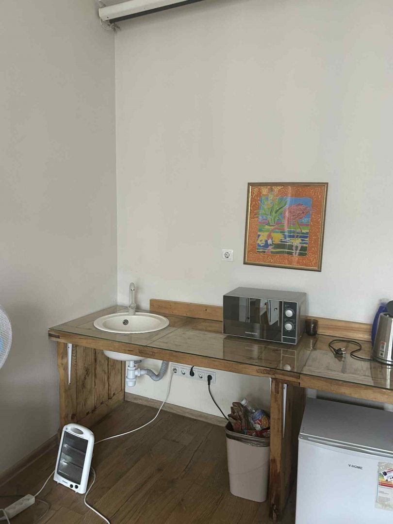 Проживали в августе. У нас был двухместный номер с двумя кроватями. Комната маленькая, но чистая. Все необходимое есть. Душевые и туалеты в коридоре общие для нескольких номеров, но это не напрягало. Всегда было свободно и чисто. Для тех, кто собирался готовить есть кухня со всем оборудованием. Мы не готовили. Питались в городе.