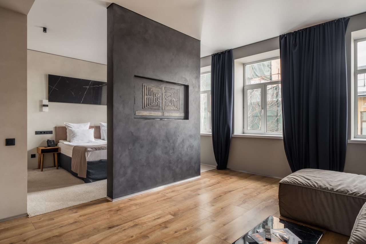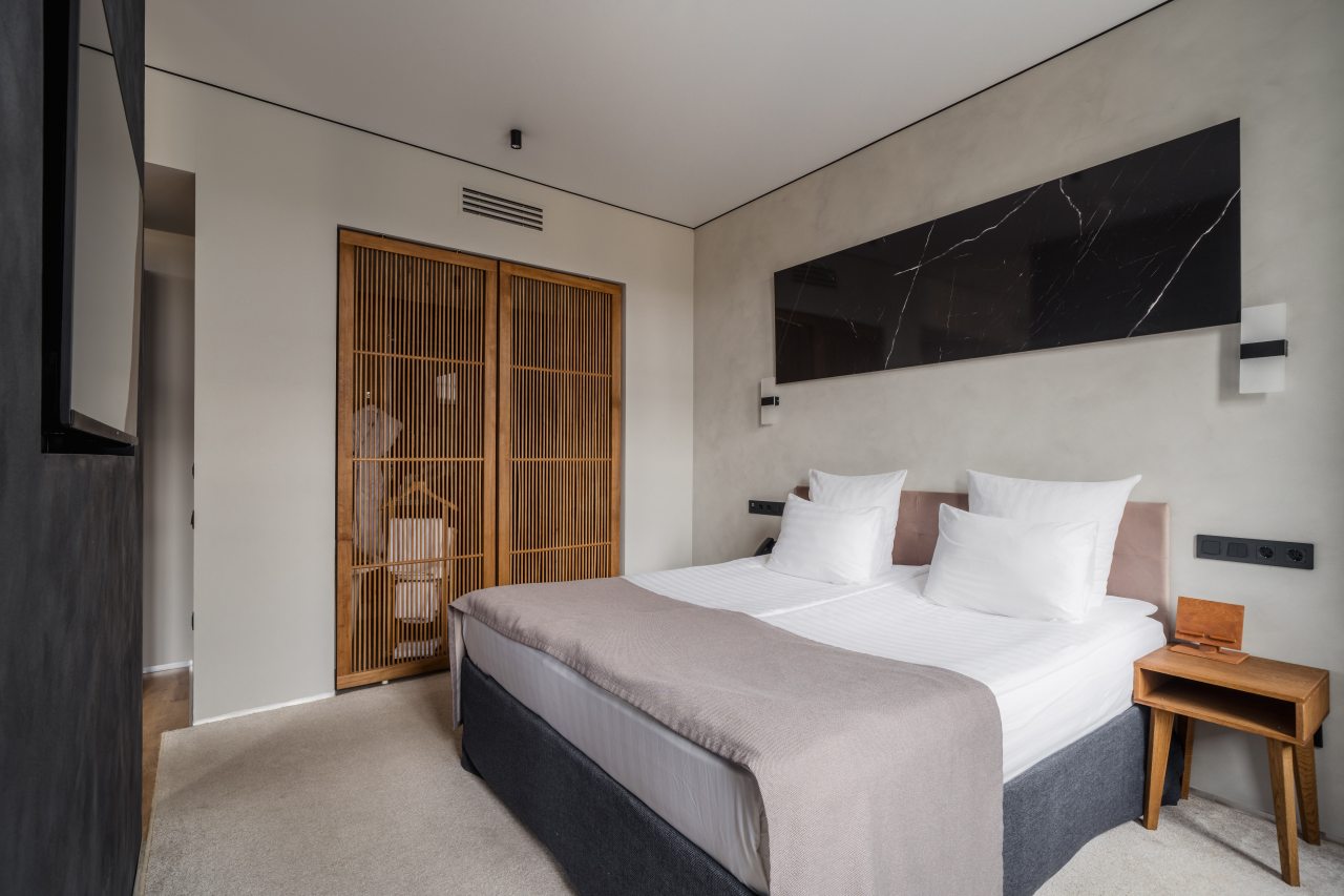 Все потрясающе, камерный отель, комфортные номера, с проектором на всю стену и большими окнами, так же все необходимые уходовые средства, утюг, халаты и прочее дополняют композицию. Останавливались в день рождение, был потрясающий комплимент от отеля в виде пироженных и проссеко.