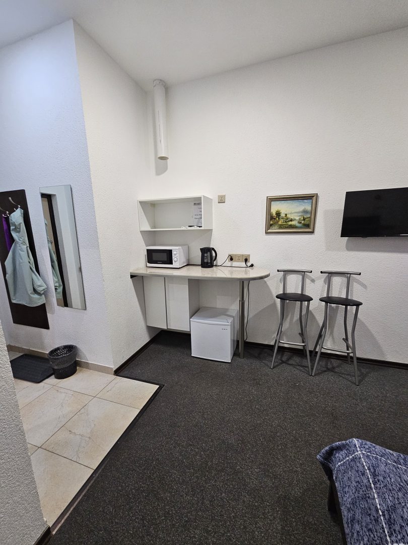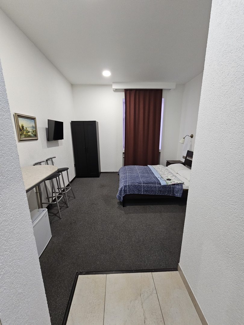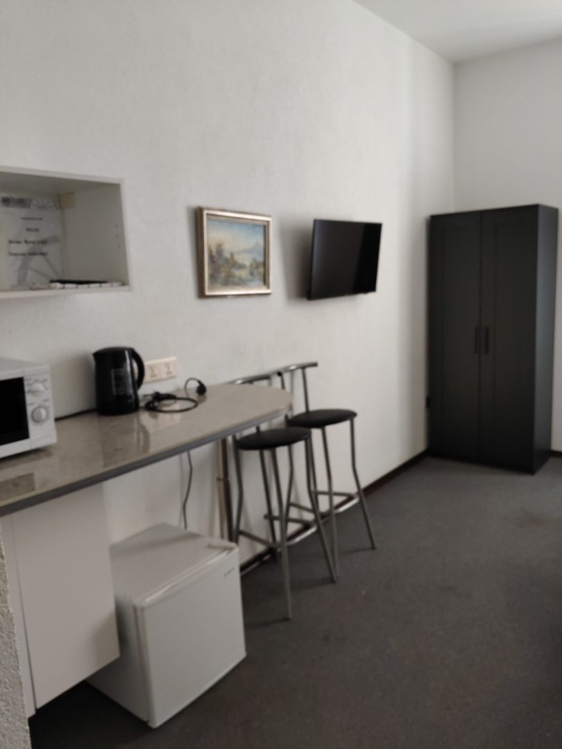 Квартира-студия, чистая, просторная. В номере все удобства: кухня, холодильник, микроволновка,телевизор, большая кровать. Отдельно душ с туалетом. Персонал. Отдельное спасибо администратору Тамаре, в помощи при заселении. Квартира находится в 15 минут от Московского вокзала.