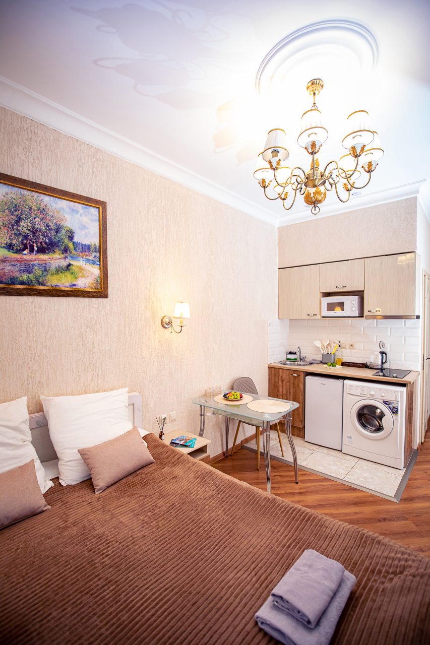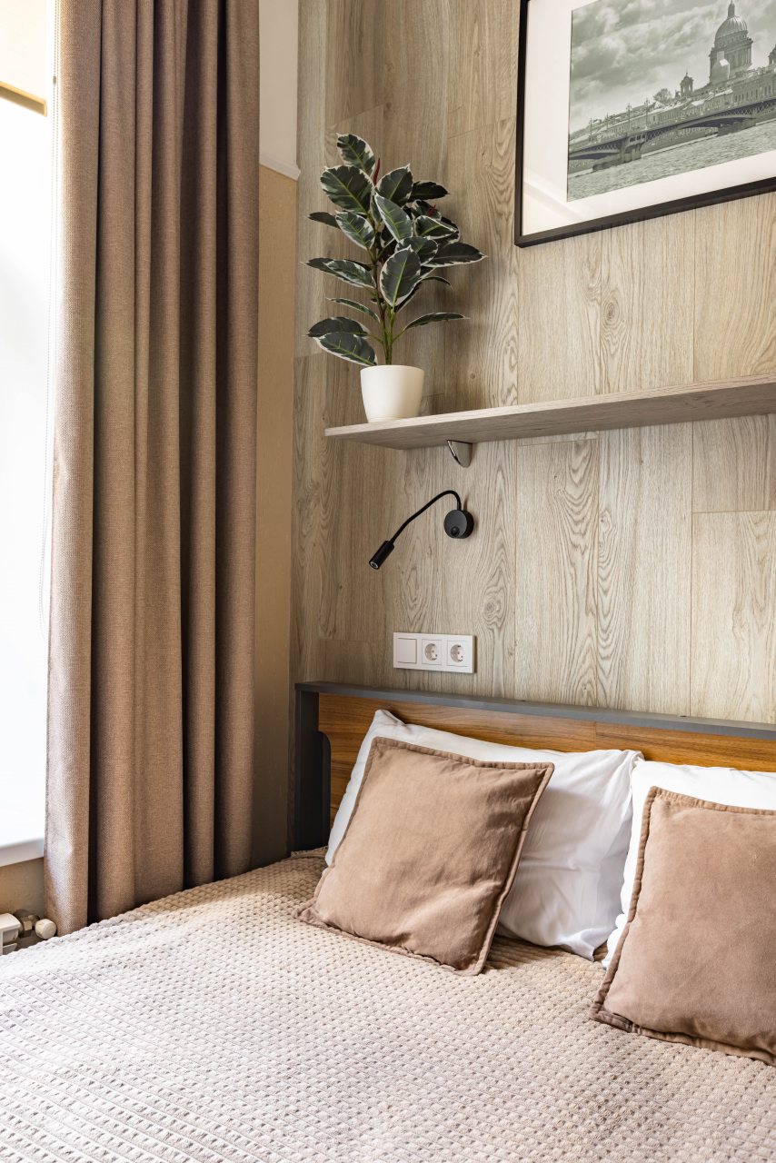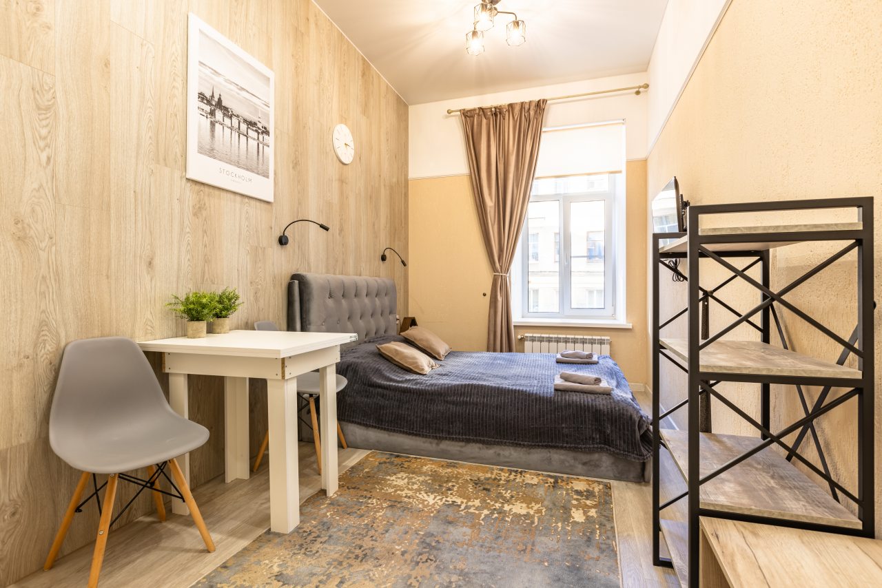 Остались очень довольны проживанием в этом отеле. Расположение просто идеальное, в тихом переулке рядом с Невским Проспектом. В шаговой доступности находятся Московский вокзал, метро и все основные достопримечательности Санкт-Петербурга, аптеки, магазины сувениров. За углом магазин Пятерочка. Номер небольшой, но чистый и очень уютный. Есть все необходимое: чайник, микроволновка, холодильник, утюг, фен, набор посуды (ножи, ложки, вилки, тарелки, чашки, кастрюля и сковорода). Особенно порадовало наличие бойлера, поэтому была уверенность, что не останемся без горячей воды. Для нас это было важно. Обязательно будем здесь ещё останавливаться, поскольку далеко не все успели посмотреть в городе.