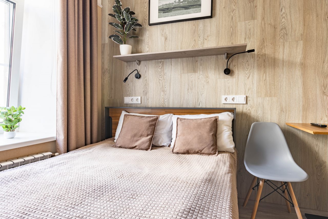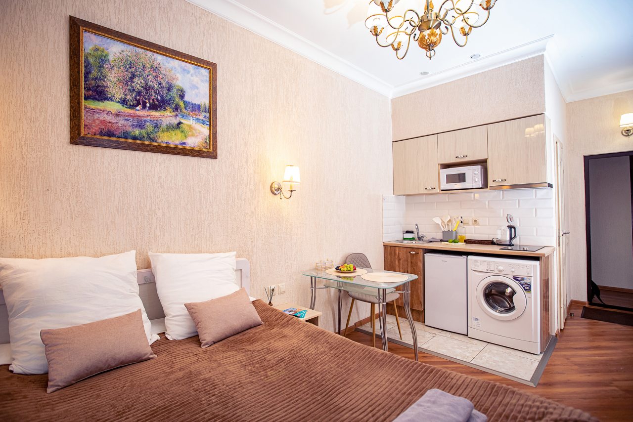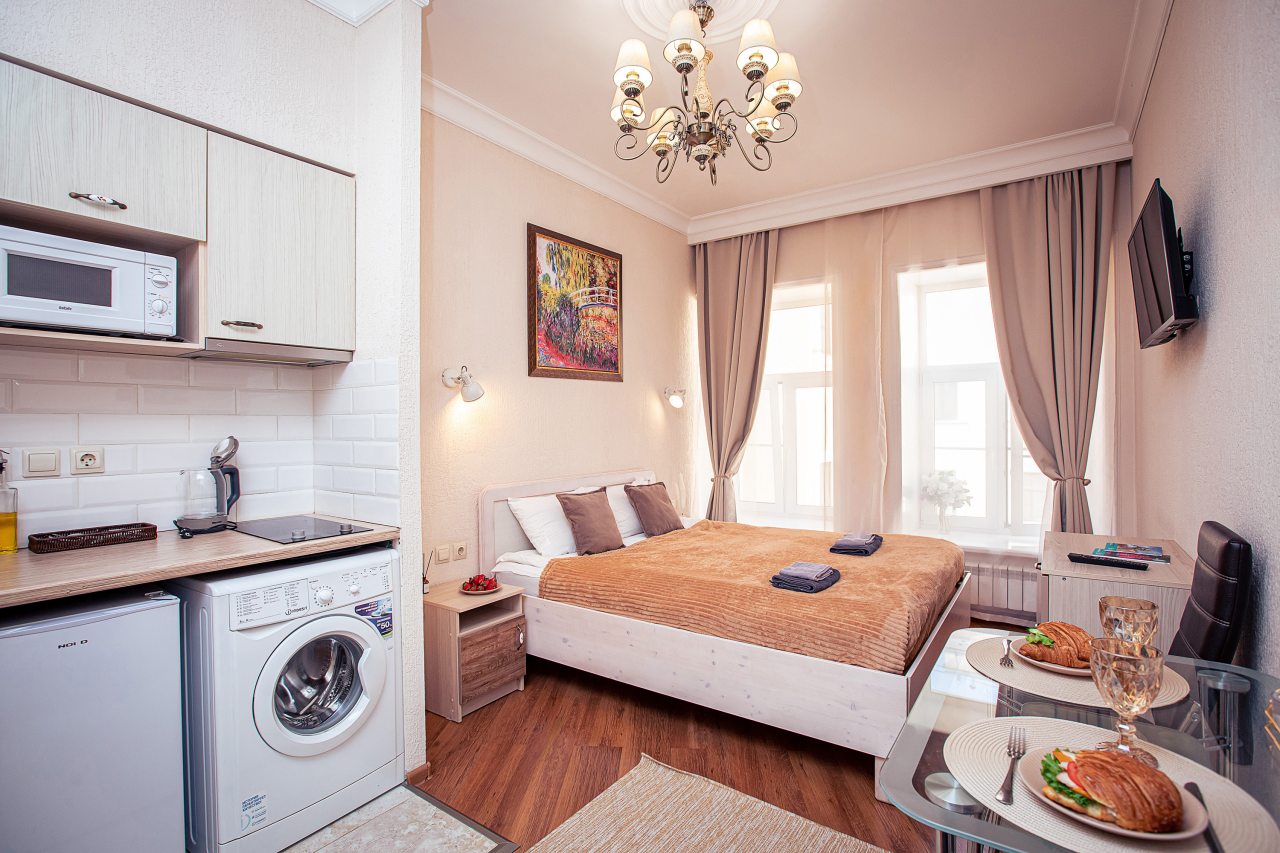 Остались очень довольны проживанием в этом отеле. Расположение просто идеальное, в тихом переулке рядом с Невским Проспектом. В шаговой доступности находятся Московский вокзал, метро и все основные достопримечательности Санкт-Петербурга, аптеки, магазины сувениров. За углом магазин Пятерочка. Номер небольшой, но чистый и очень уютный. Есть все необходимое: чайник, микроволновка, холодильник, утюг, фен, набор посуды (ножи, ложки, вилки, тарелки, чашки, кастрюля и сковорода). Особенно порадовало наличие бойлера, поэтому была уверенность, что не останемся без горячей воды. Для нас это было важно. Обязательно будем здесь ещё останавливаться, поскольку далеко не все успели посмотреть в городе.