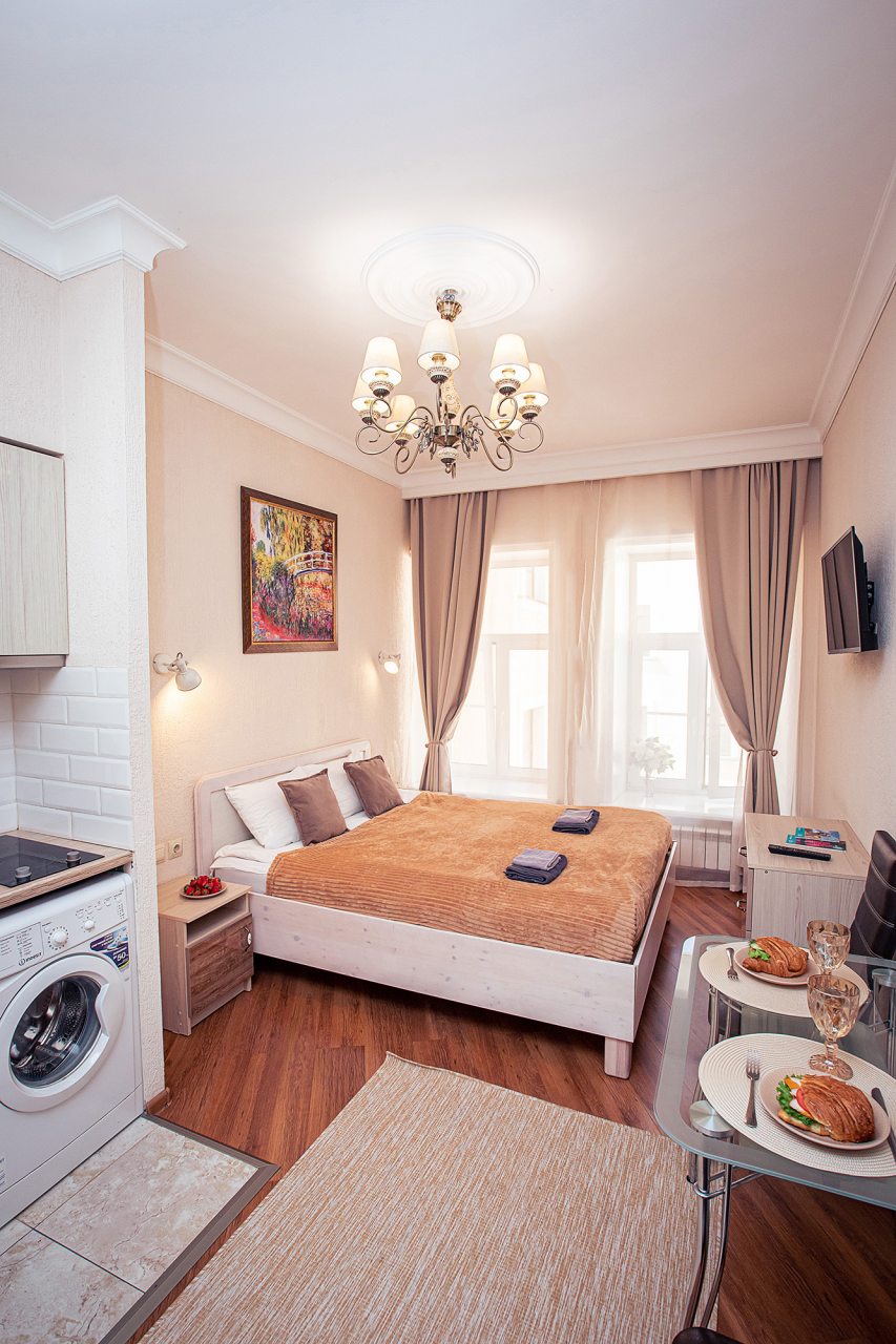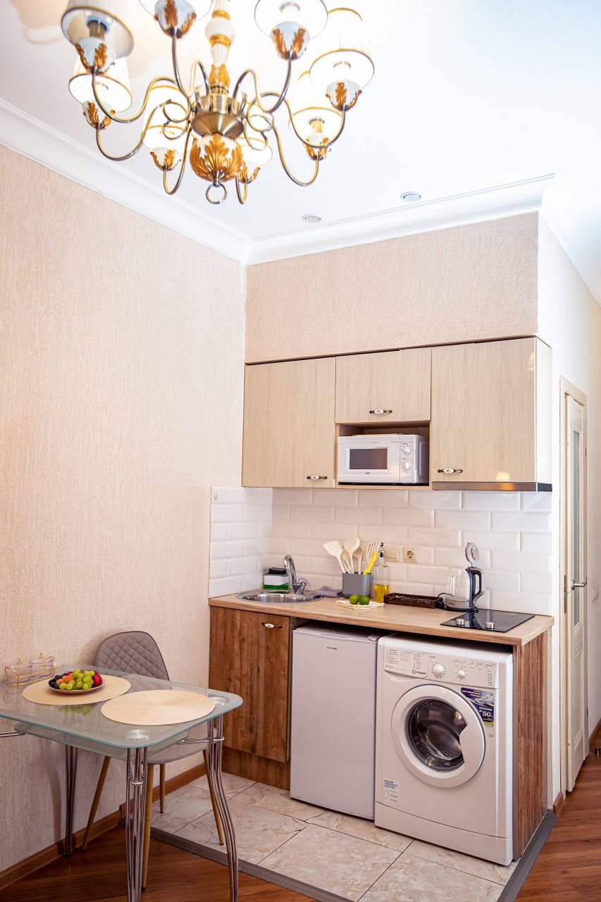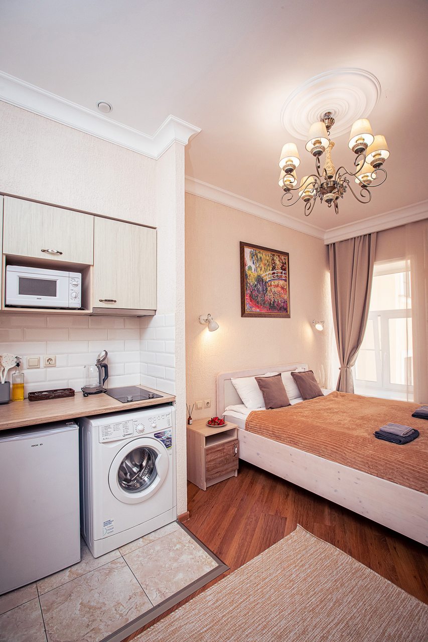 Отличные апартаменты. Все есть душ, удобная кровать, небольшой кухонный гарнитур, стиралка и тд.