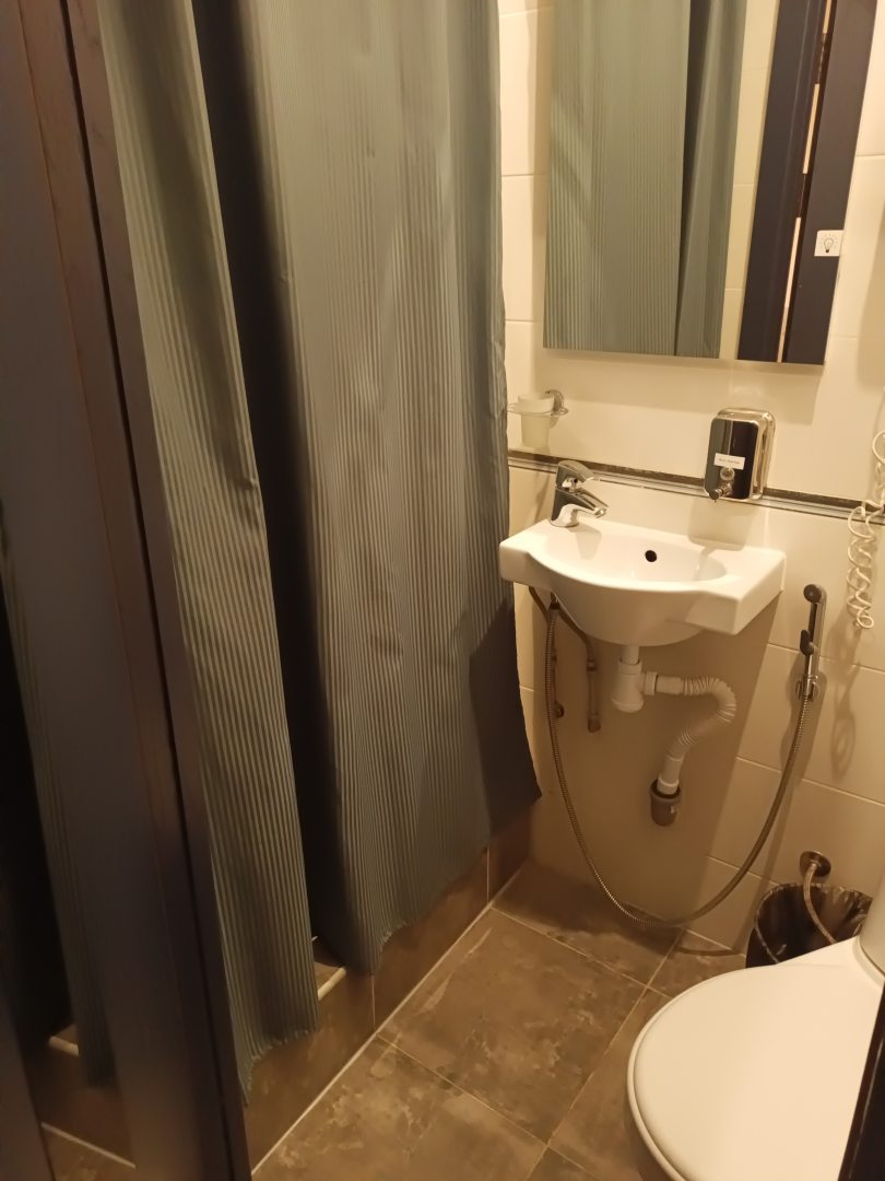 Двухместный номер маленький, но сойдёт для того, чтобы переночевать и помыться.