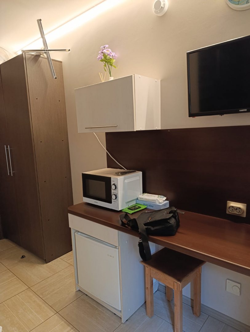 Хорошее расположение. В пешей доступности до центра, метро. Рядом выбор кафе и ресторанов. В номере чисто, ежедневная уборка. В номере набор необходимых вещей: посуда, вентилятор, средства гигиены. В общем доступе выбор чая, растворимый кофе, печенье, сладости. На входе разовые тапочки, для удобства.