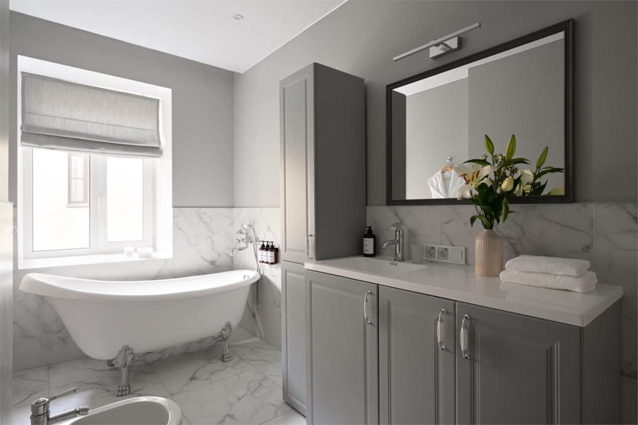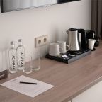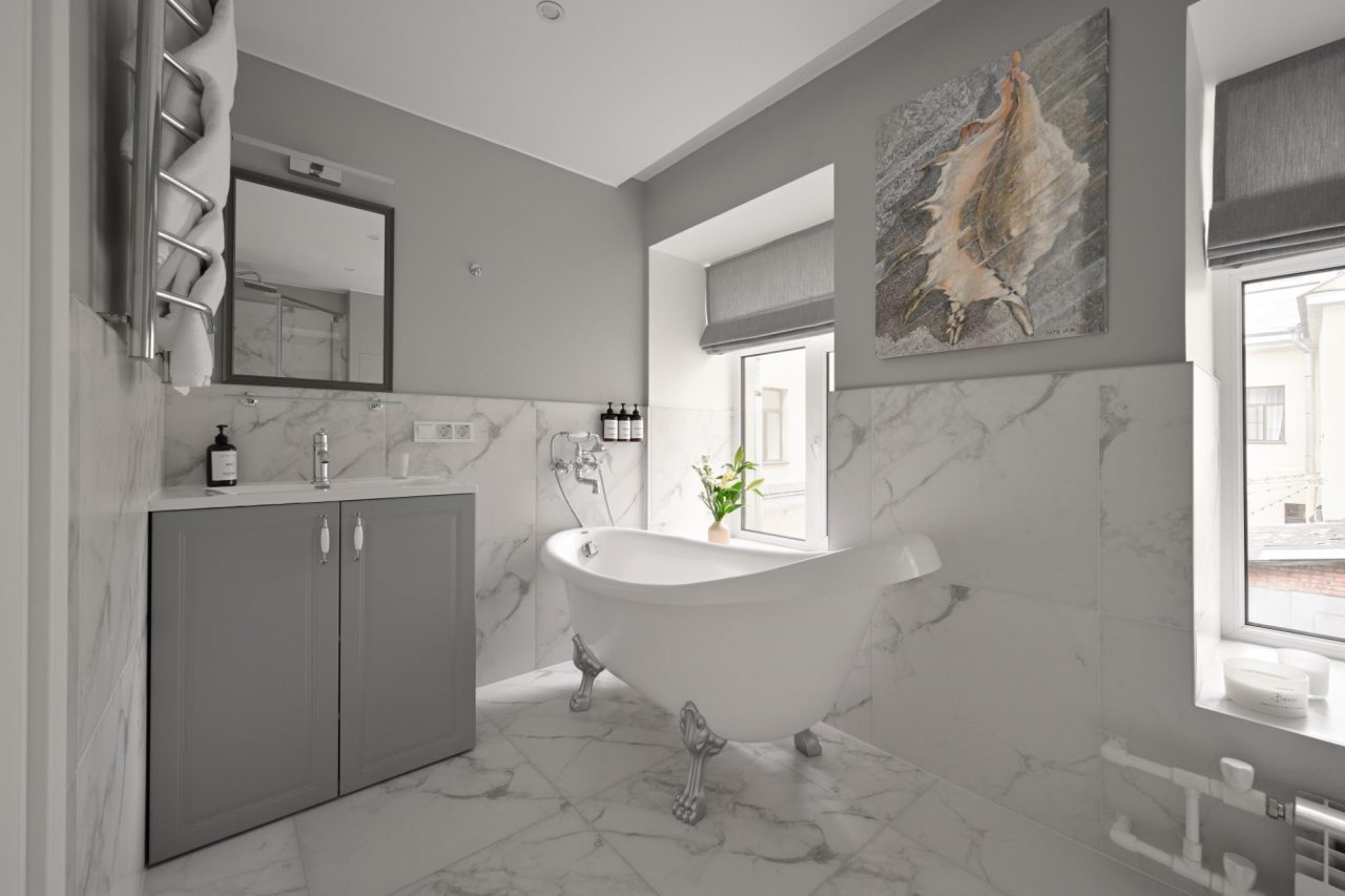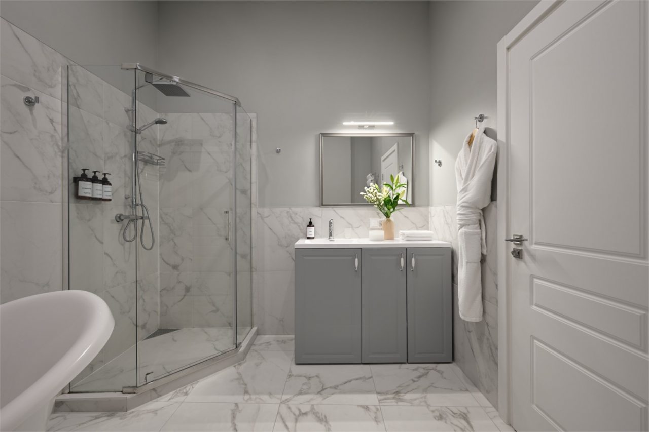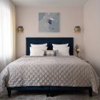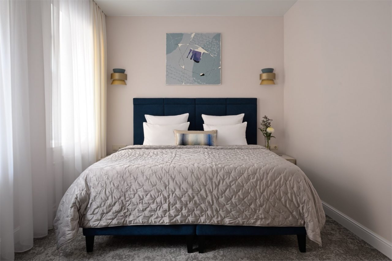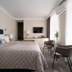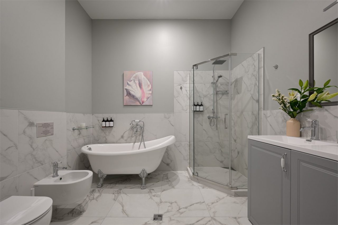 Номера просторные и светлые, в них царит уют и прекрасная тишина, которая позволяет хорошо выспаться и расслабиться. Особое удовольствие доставляет кухня с полным набором техники: посудомоечная машина, кофемашина и прочие мелочи, продуманные до мелочей. В ванной комнате — и ванна, и душевая кабина, а стиральная машина добавляет удобства особенно для длительного пребывания.