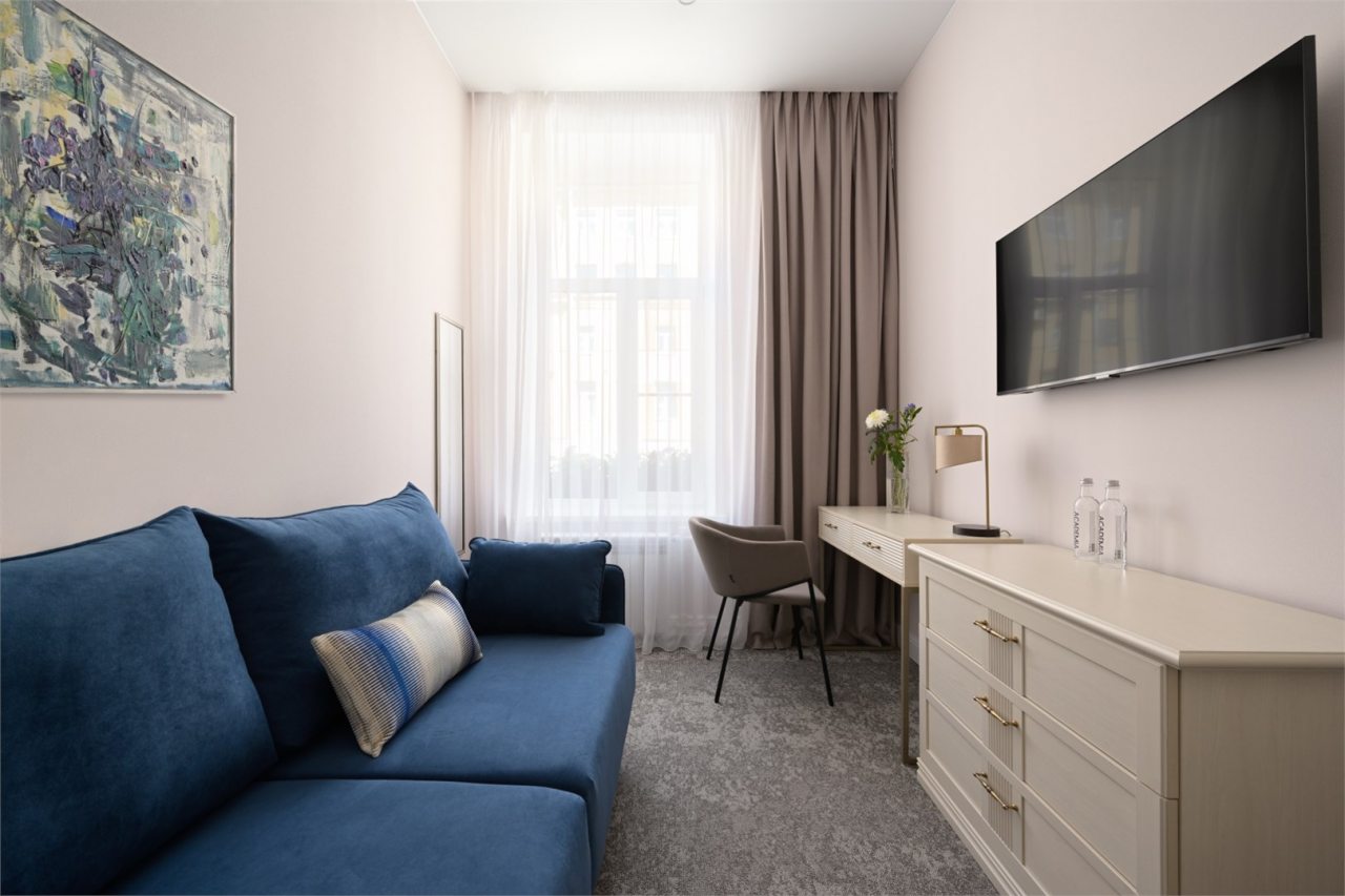 Очень достойный отель на Васильевском острове — настоящее открытие для тех, кто ценит комфорт и спокойствие. Отель расположен в тихом уютном районе, при этом все главные достопримечательности буквально рядом, что очень удобно для прогулок.