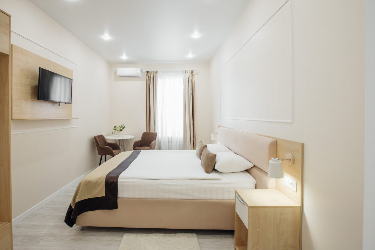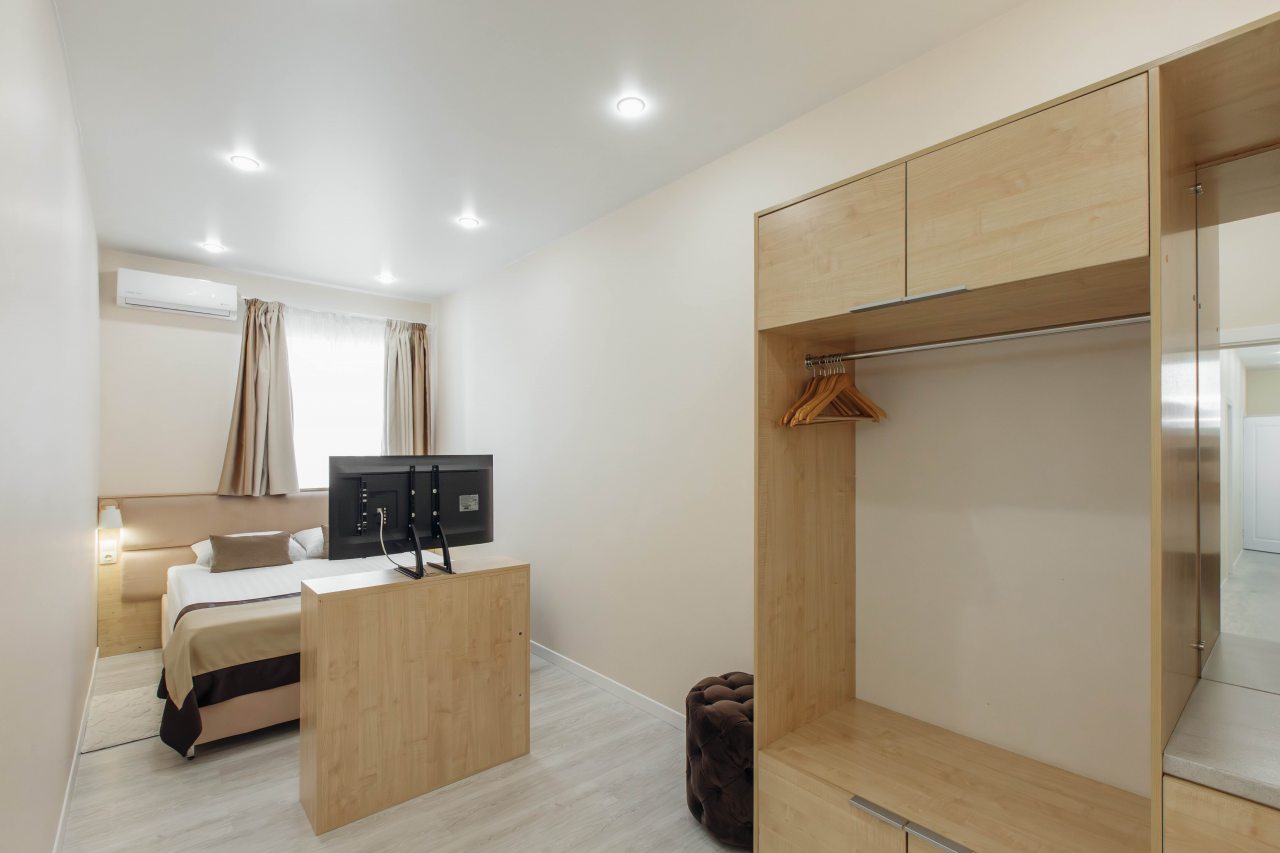 Была с сыном, приезжали посмотреть город. Номер нам обоим понравился. Много места для вещей, и двоим не тесно было. Работал устойчивый интернет, мы делали видео звонки, всё проходило без проблем. Есть телевизор, качество изображения хорошее. Недалеко транспортное сообщение. Так что довольны выбором отеля вдвоем.