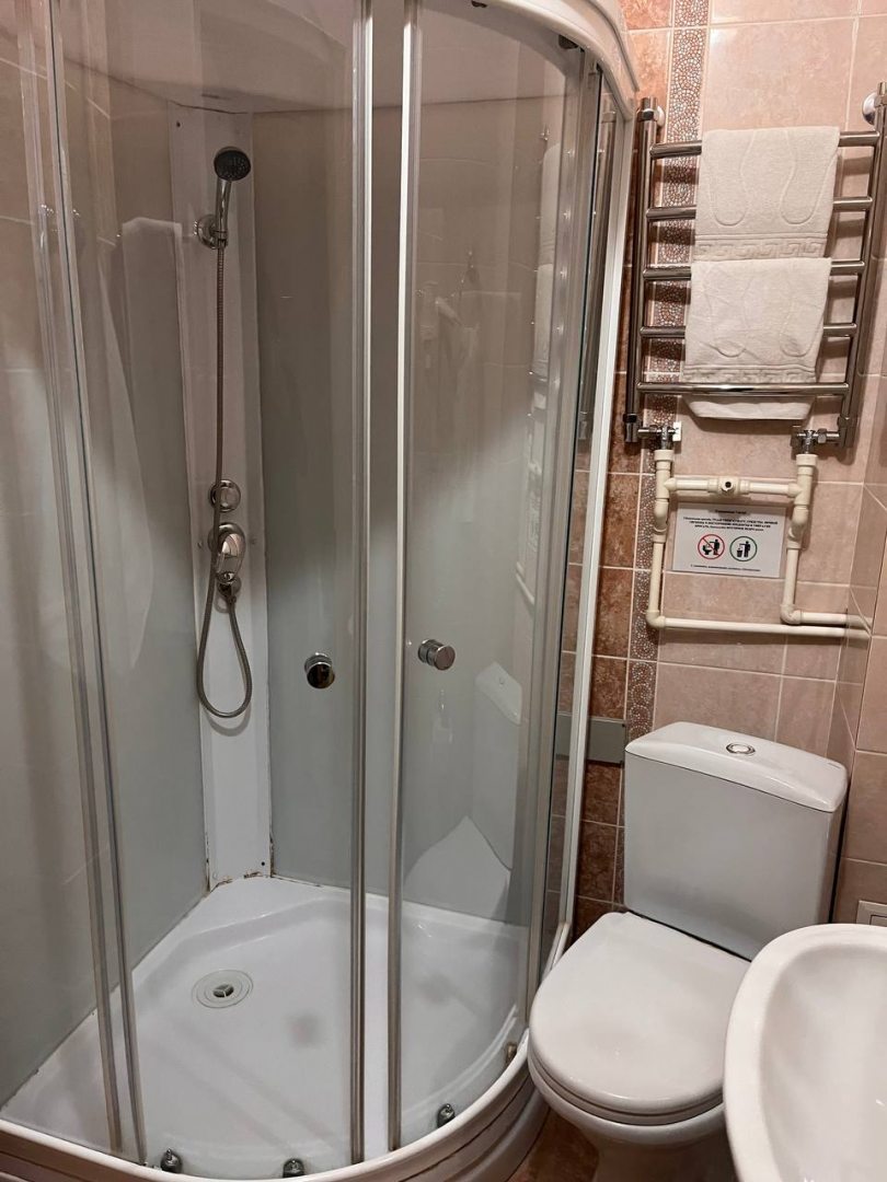 Отель расположен недалеко от Лавры.Поеск занял 30минут,так как находится во дворах.Отель окружон другими отелями от этого тишина ночью была идеальная.Нам достался номер на первом этаже,с большим окном,телевизором,холодильником,кондиционером и чайником.В ванне был комплект полотенец и шампуней.Горячая вода сразу пошла,но кран должен быть повернут в право.на завтрак нам представили овсяную кашу и яичницу с укропом,а так же горячий бутерброд с сыром и чай или кофе.
