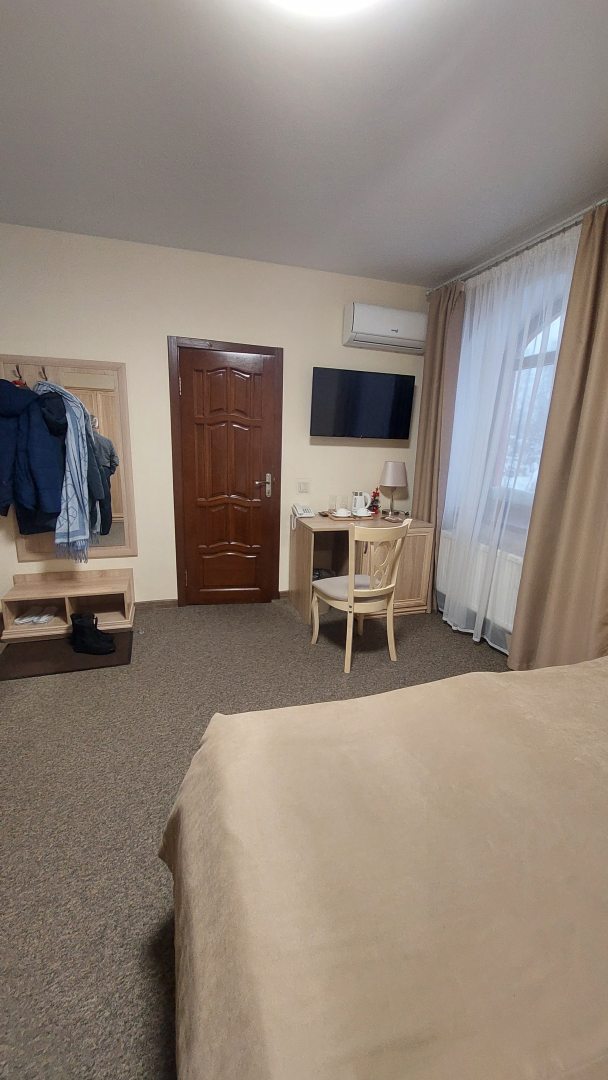 Останавливались на одну ночь. Отель великолепный, маленький, камерный, домашний и очень уютный. Великолепные матрасы, постель, чистота. Хорошая мебель всё работает. Прекрасный санузел, душевая, полотенца и индивидуальные гигиенические принадлежности. Чай, кофе, чайник в номере, комплимент от гостиницы, очень приятно. Администратору отеля и владельцу отдельная благодарность. Приехали в метель, поставили машину на просторную стоянку во дворе. Утром двор был расчищен от снега, в том силе и крыльцо, хотя снегопад не прекращался. Всё оформлено стильно и с заботой о гостях. Будем в городе, остановимся только в этом отеле, обязательно по рекомендуем друзьям. Спасибо, процветания вам.