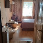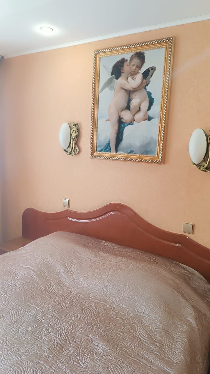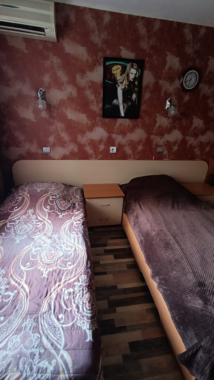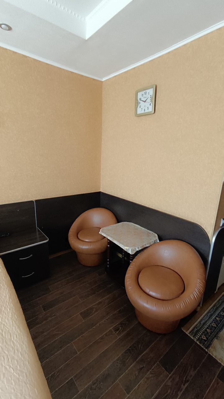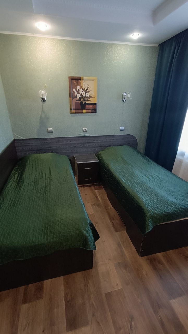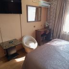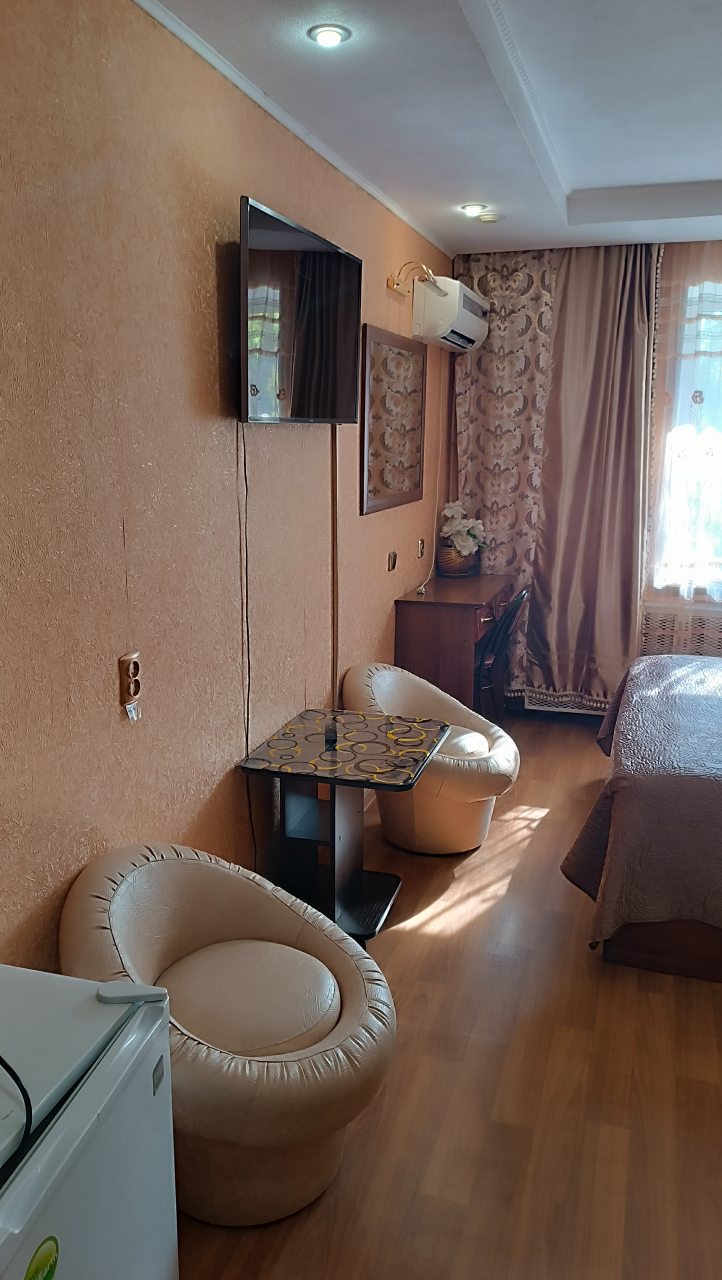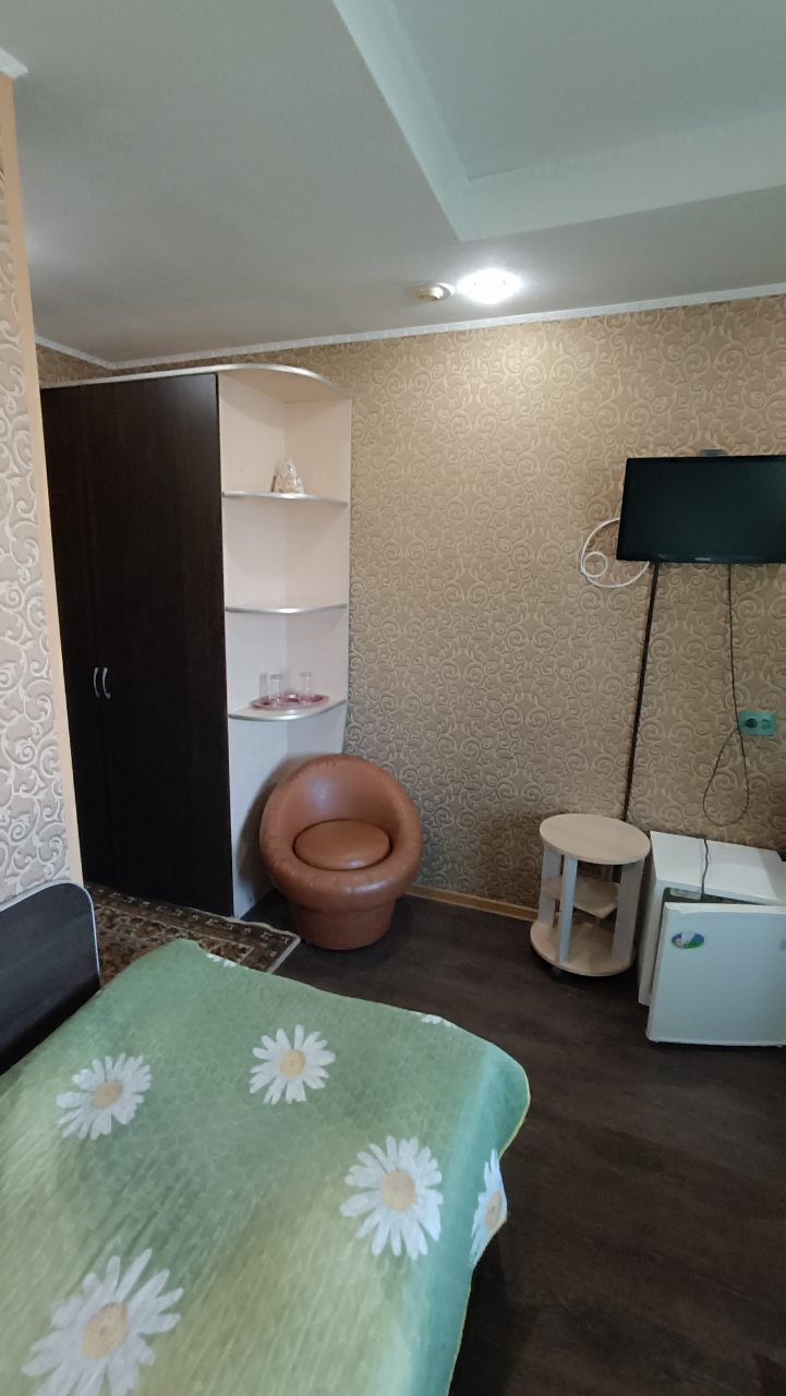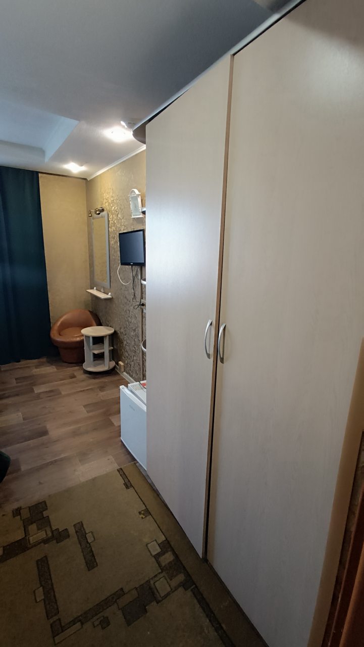 В номере уютно и чисто, все постельное белье чистое. Посторонних запахов в номере нет. Еда в баре вкусная. Администратор вежливый. Рядом парковка. Так же в номере есть телевизор и холодильник, небольшой санузел.