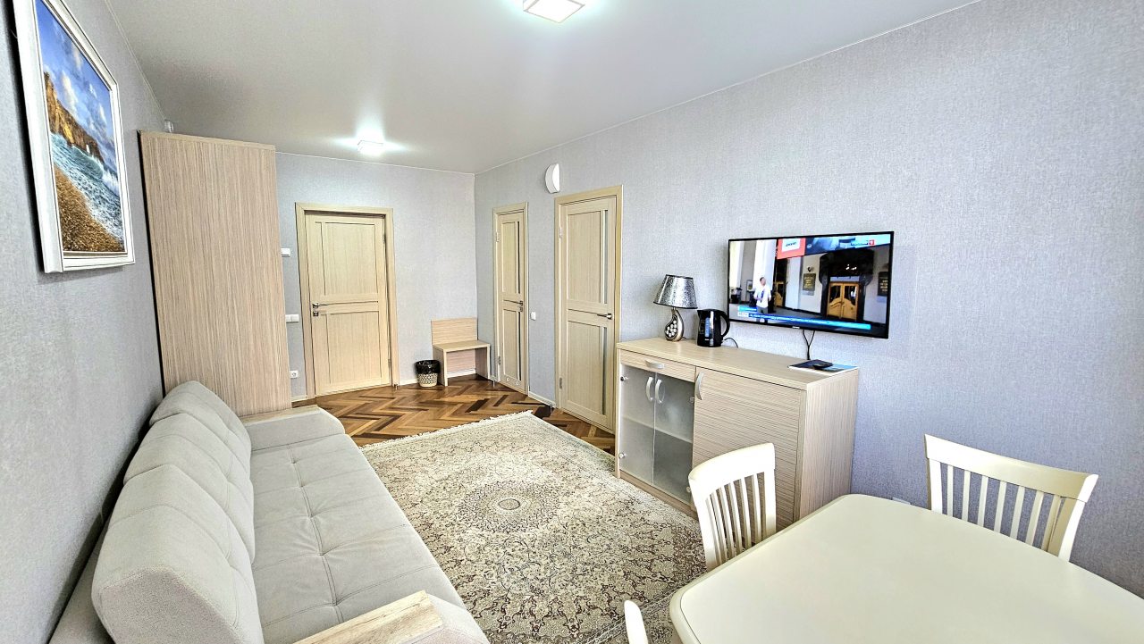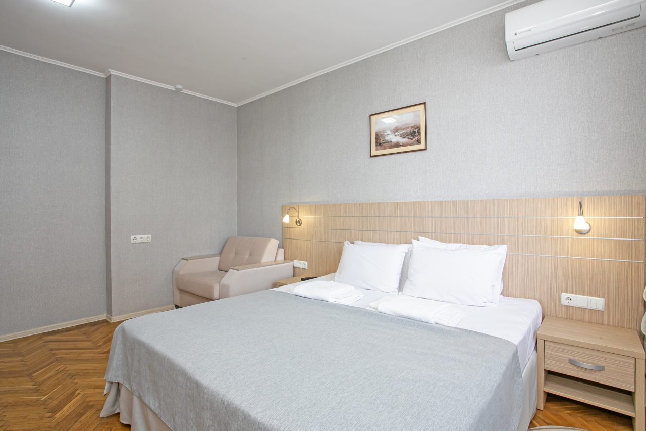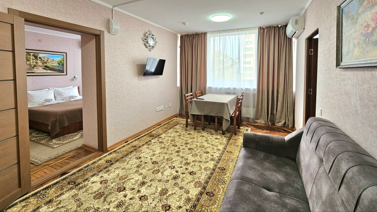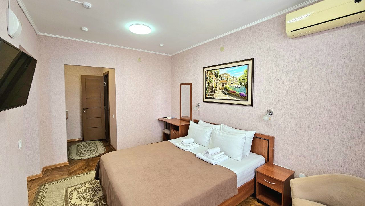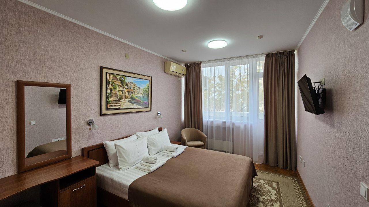 Совершенно случайно нашла вашу гостиницу и влюбилась как говорится с первого взгляда. Удобное расположение, в шаговой доступности остановки общественного транспорта, откуда можно уехать в любую часть города. Рядом рынок, столовая, магазины. Доброжелательный персонал, всё было оформленное без проблем, мы приехали раньше, а в номер заселились всё равно до 14-00. Спасибо! А самое главное нас порадовала парковка, нам это было важно и ещё оплата в гостинице при заселении, что тоже ооочень понравилосьВ номере чисто, душ, туалет, телевизор, холодильник, сплит. На этаже кулер, утюг, вид из окна море. В общем всё очень понравилось. Теперь только к вам!!!