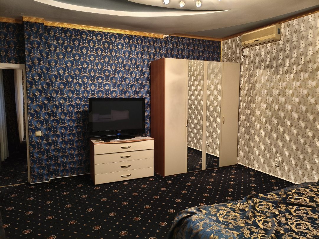 С супругой мы взяли двухместный полулюкс в этом отеле. Интерьер в нем красивый, большая двуспальная кровать есть. Необходимые электрические приборы присутствовали, как и небольшой шкаф. Был в номере у нас и балкон с зоной отдыха. В ванной комнате установлена душевая кабинка. Полотенец достаточно предоставили. На территории есть бассейн, где можно покупаться.
