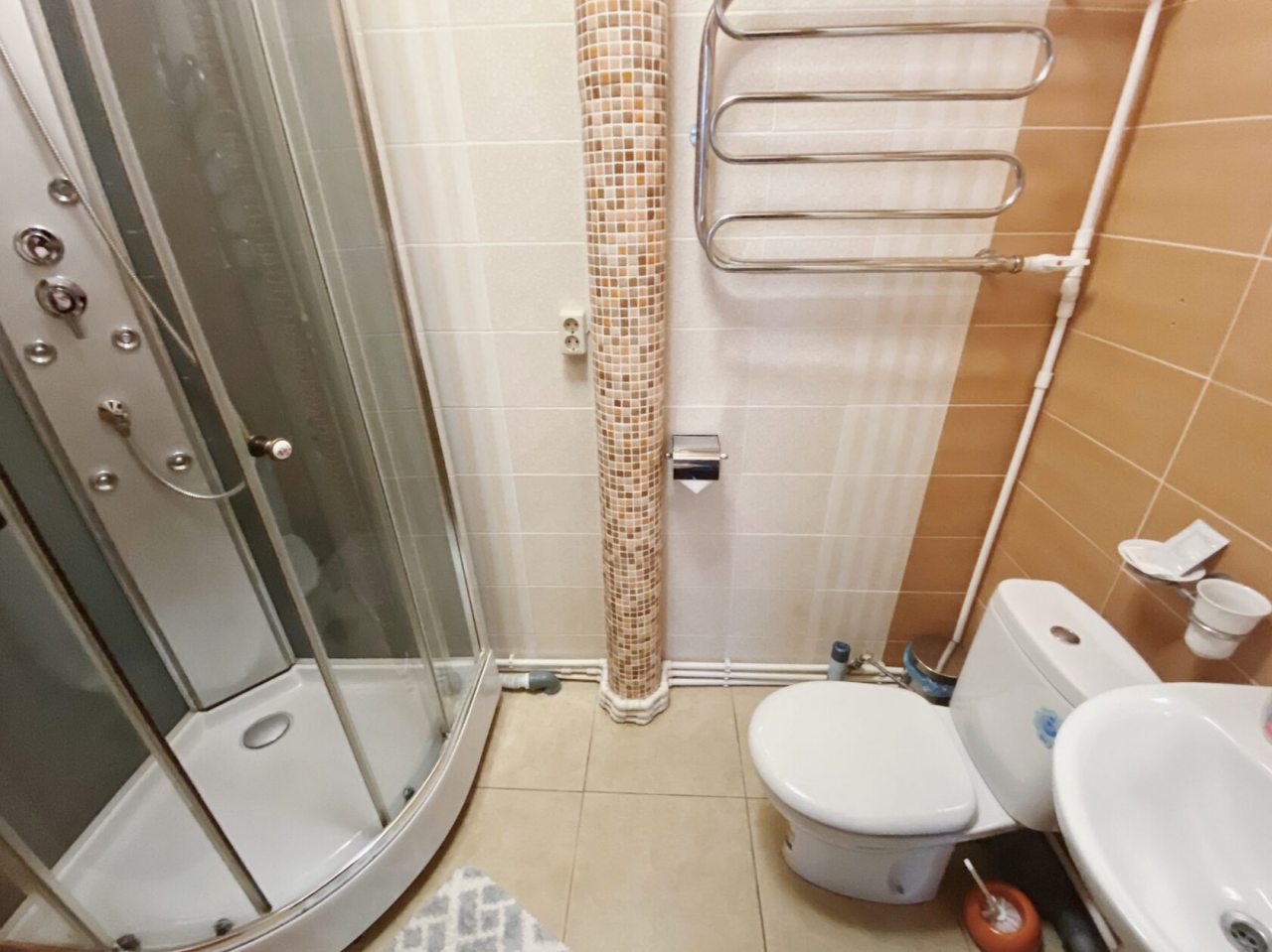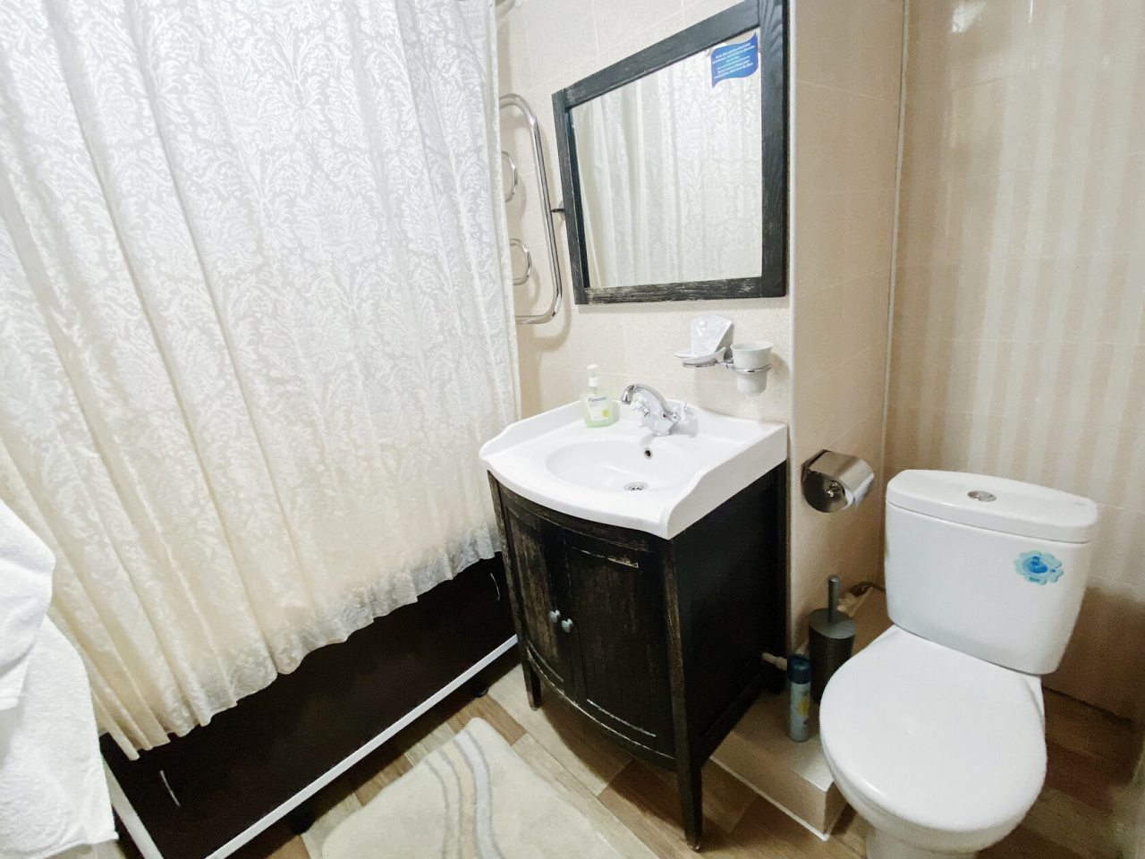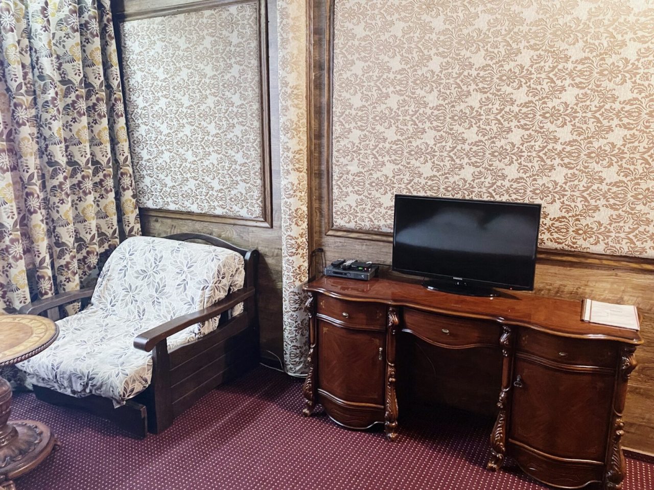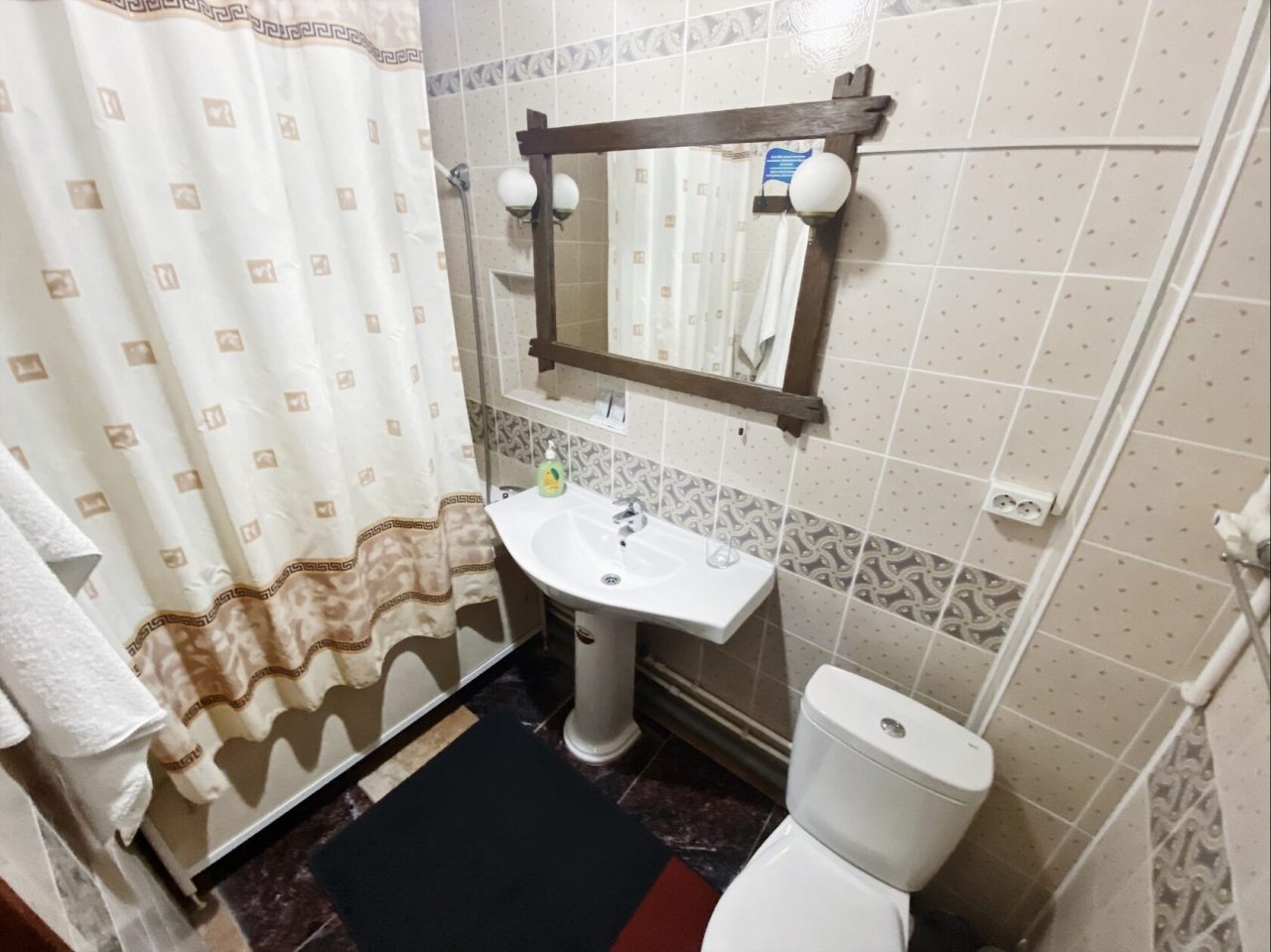 Из недостатков: не понравился ковер на полу и душевая из-за замусоленности какой -то. Ковер посоветую отмыть как следует на автомойке, обновить шторку в душе,хотя бы, и впечатление от номера будет гораздо лучше.