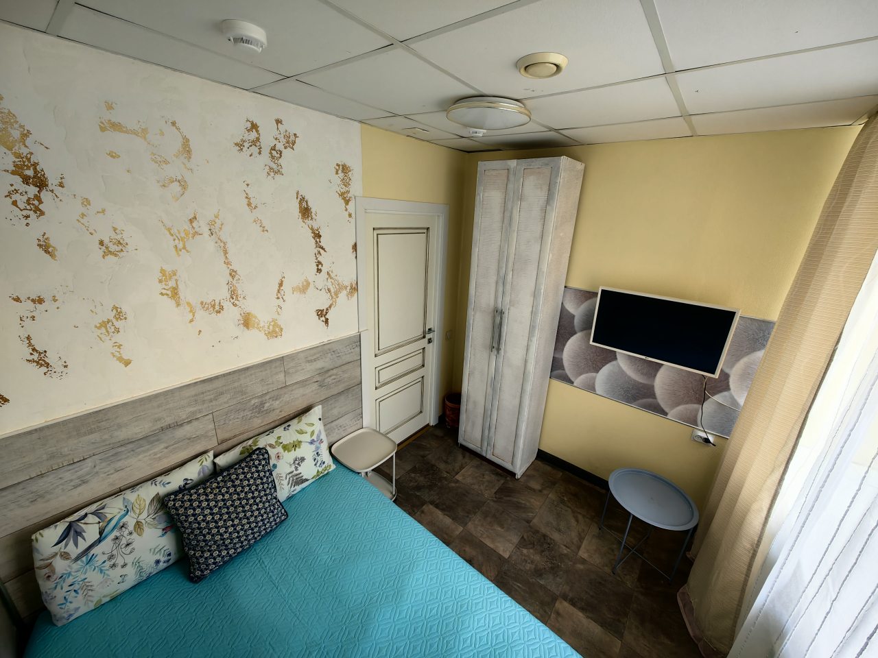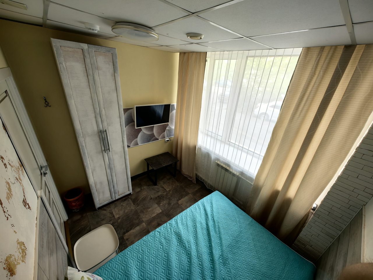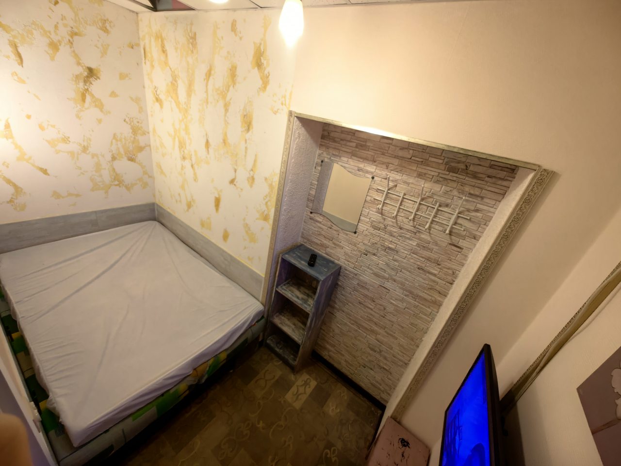 Отель прям очень бюджетный. Это заметно не только по цене, но и по оснащению номера. Мы размещались в комнате на двоих без окна. Здесь у нас по сути была своя кровать, небольшой столик, шкаф и собственно говоря все. Санузел на этаже общий. В нем конечно тоже необходимо делать ремонт, но в целом за те деньги, которые здесь берут, неплохо.