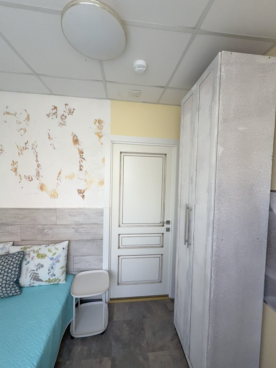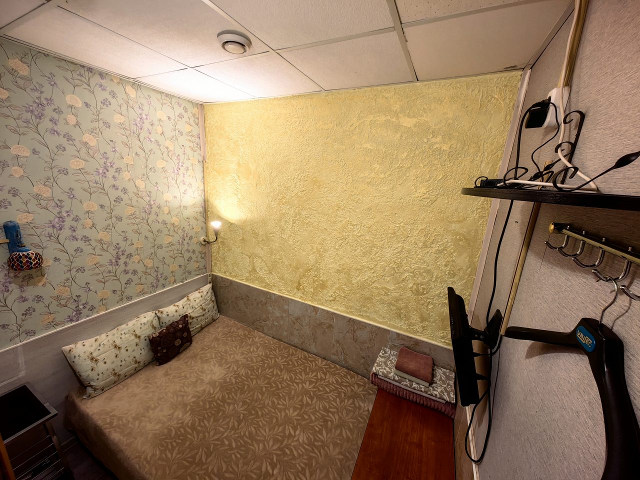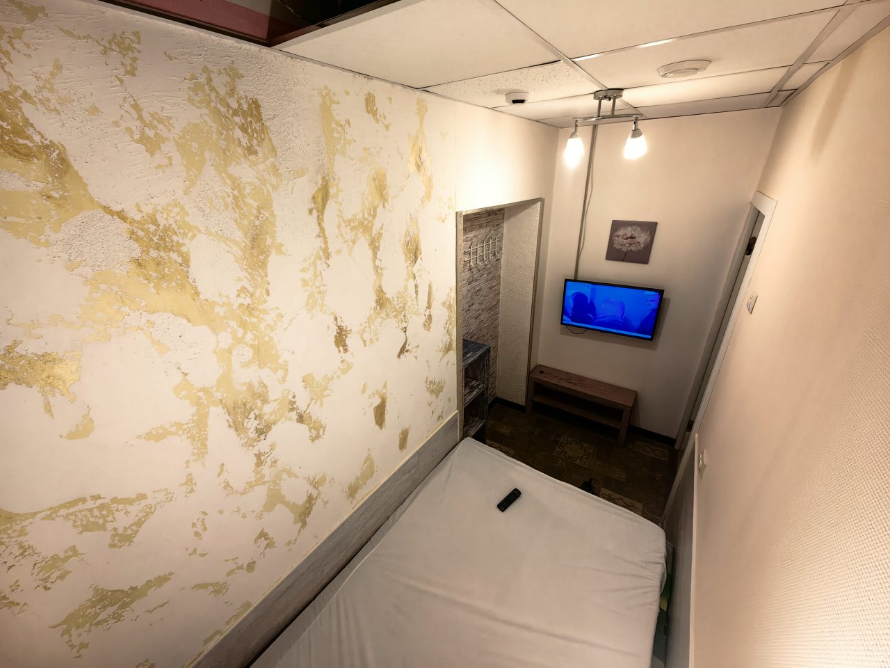 Отель прям очень бюджетный. Это заметно не только по цене, но и по оснащению номера. Мы размещались в комнате на двоих без окна. Здесь у нас по сути была своя кровать, небольшой столик, шкаф и собственно говоря все. Санузел на этаже общий. В нем конечно тоже необходимо делать ремонт, но в целом за те деньги, которые здесь берут, неплохо.
