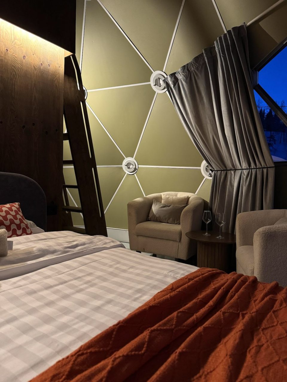 Идеальная романтическая поездка. Безумно довольна таким отдыхом. Давно мечтала побывать в сфере. Все это очень сказочно и и в реальности так же красиво как на фото. Это огромное стекло, через которое видно природу - отдельная любовь. Вечером очень уютно и не страшно. Большая кровать, стильная ванная комната. Везде чисто, самое главное, что были стекла чистые, незаляпанные. Ставлю 10 из 10!