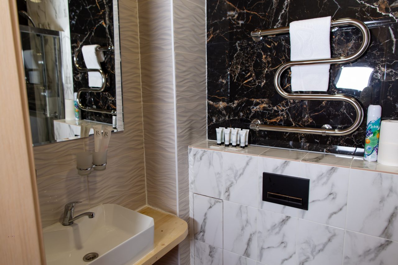 Комплекс чуток удален от центра поселка, благодаря чему тут тишина и покой. Понятно, что все удобства присутствуют: свет, вода горячая, интернет – бесперебойно. Номер чистый, достаточно просторный. Оборудовано место для сушки. Своя парковка на закрытой территории. Есть завтраки, можно брать, вкусно.