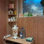 Хорошее местоположение. Приветливые сотрудники. Чисто. Есть холодильник, микроаолновка, чайник. Шампунь, мыло. Мы брали на одну ночь. Цена качество.