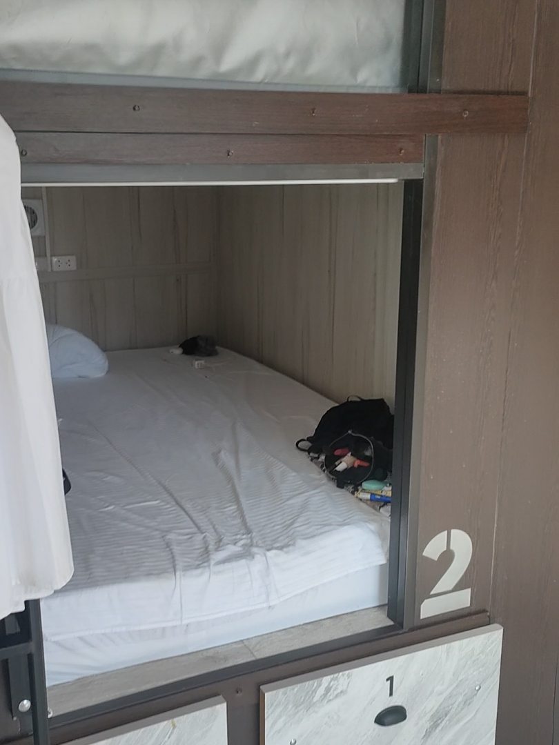 Формат для тех, кто ценит минимализм и тишину. Капсулы чистые, без лишних запахов, вентиляция работает хорошо. Удивило, насколько здесь спокойно — никакого шума и суеты, будто отдельный мир внутри большого здания. Отличный душ, в зоне отдыха можно зарядить все гаджеты и спокойно посидеть с ноутбуком. Локация удобная, до пляжа 10 минут пешком. Подходит тем, кто любит путешествовать налегке и не переплачивать. Персонал дружелюбный, к просьбам относится внимательно.