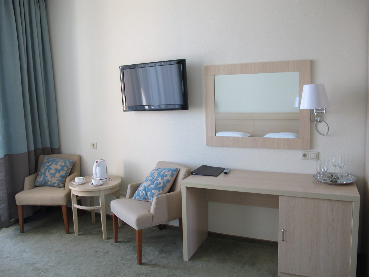 Уютные, просторные, светлые и чистые номера. Достаточно источников освещения и розеток. Никаких посторонних «ароматов». Великолепная звукоизоляция. Кормят вкусно. Сотрудники всегда на позитиве, улыбаются, не забывают здороваться, охотно отвечают на вопросы.