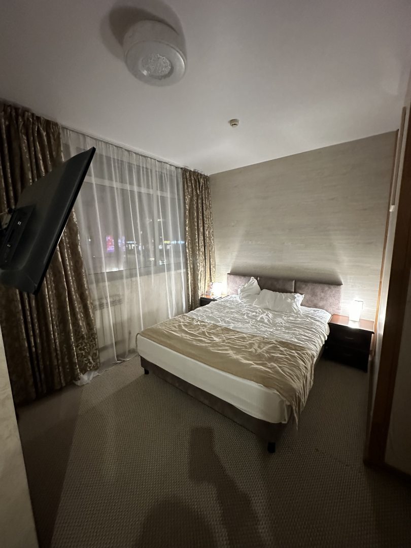 Очень внимательный и вежливый персонал. Заботливо отнеслись к нам, к нашим проблемам. Обращаю внимание, что в стандартном нет холодильника, но рядом очень вкусное и недорогое кафе. Завтрак там.