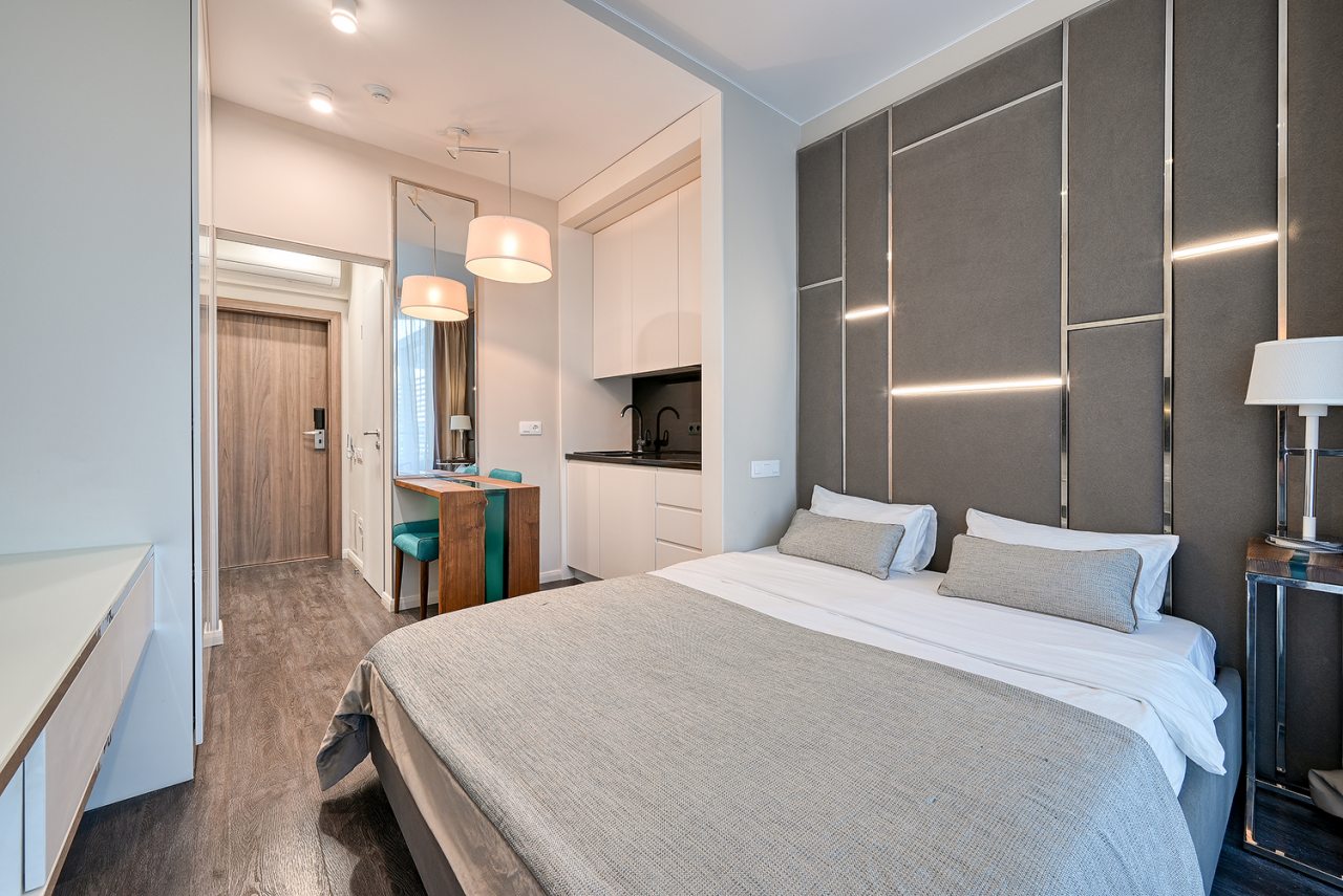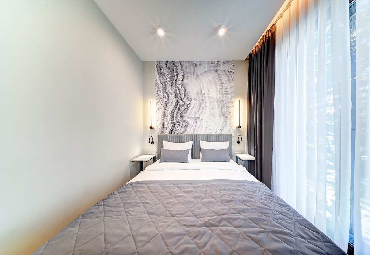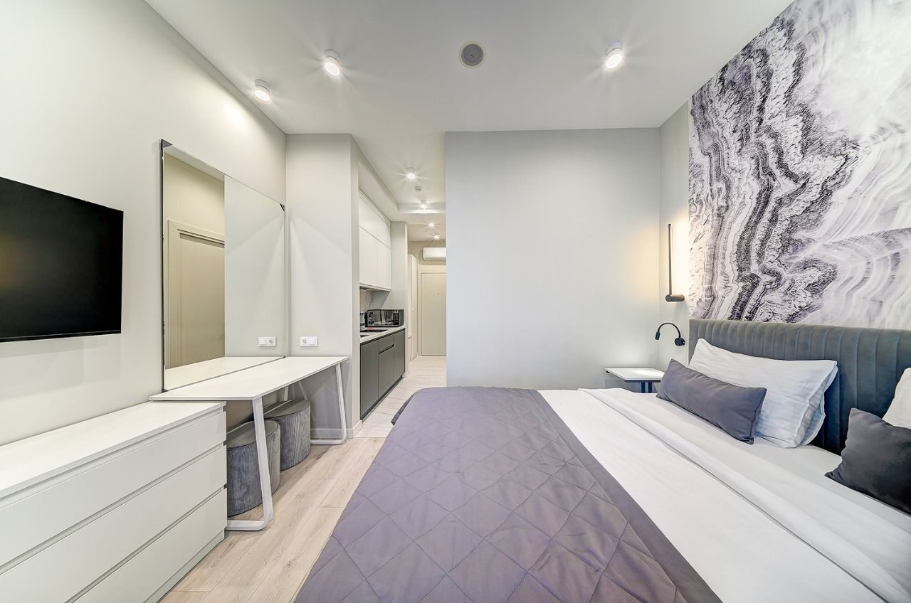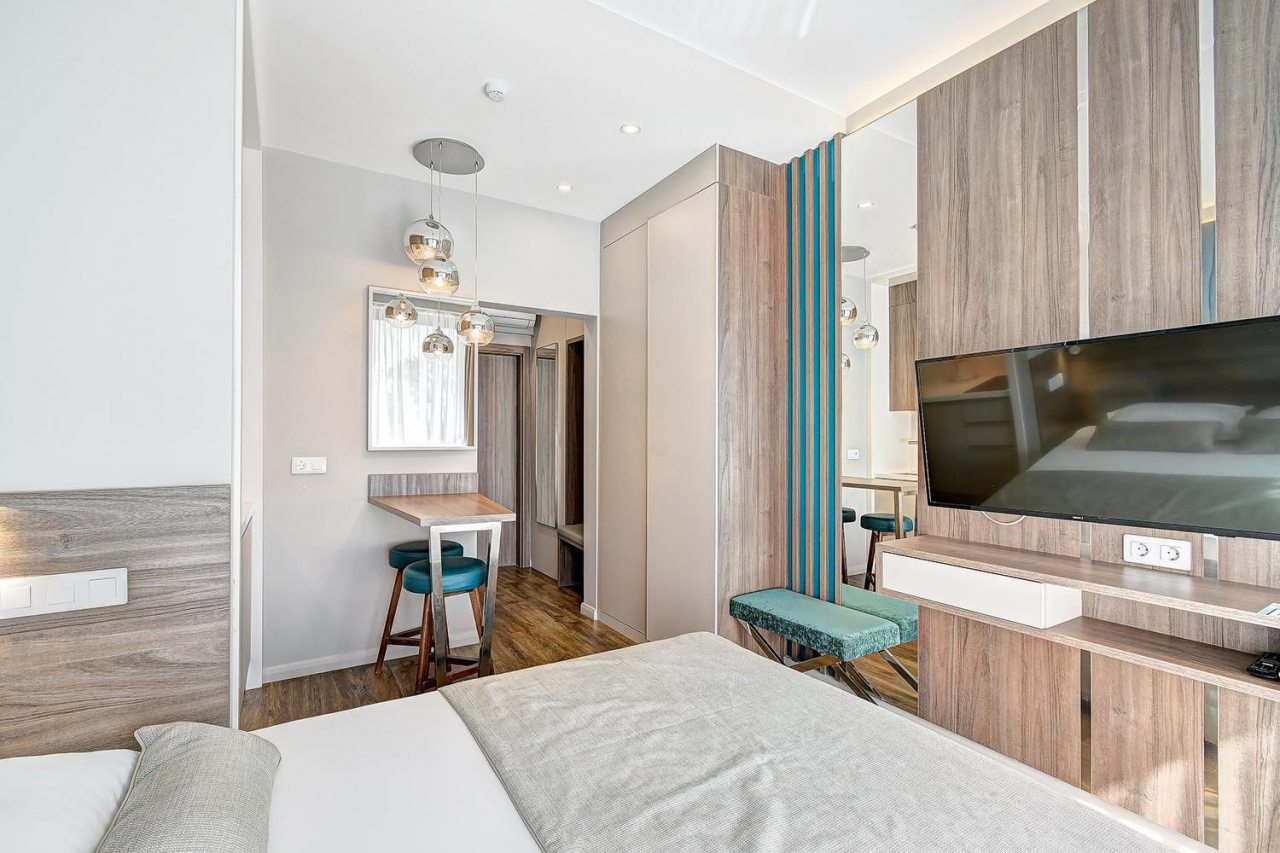 Красивый отель, расположенный на побережье Черного моря. В Сочи мы бываем часто, но в этом апарт-отеле остановились впервые. Выбрали размещение на двоих - двухместный стандарт. Пространство у нас было оформлено в приятных светлых тонах. Шкафов много, они все встроены в ниши, их практически незаметно. Но зато они очень вместительные. По стоимости вышло выгодно, для первой линии вообще шикарно.