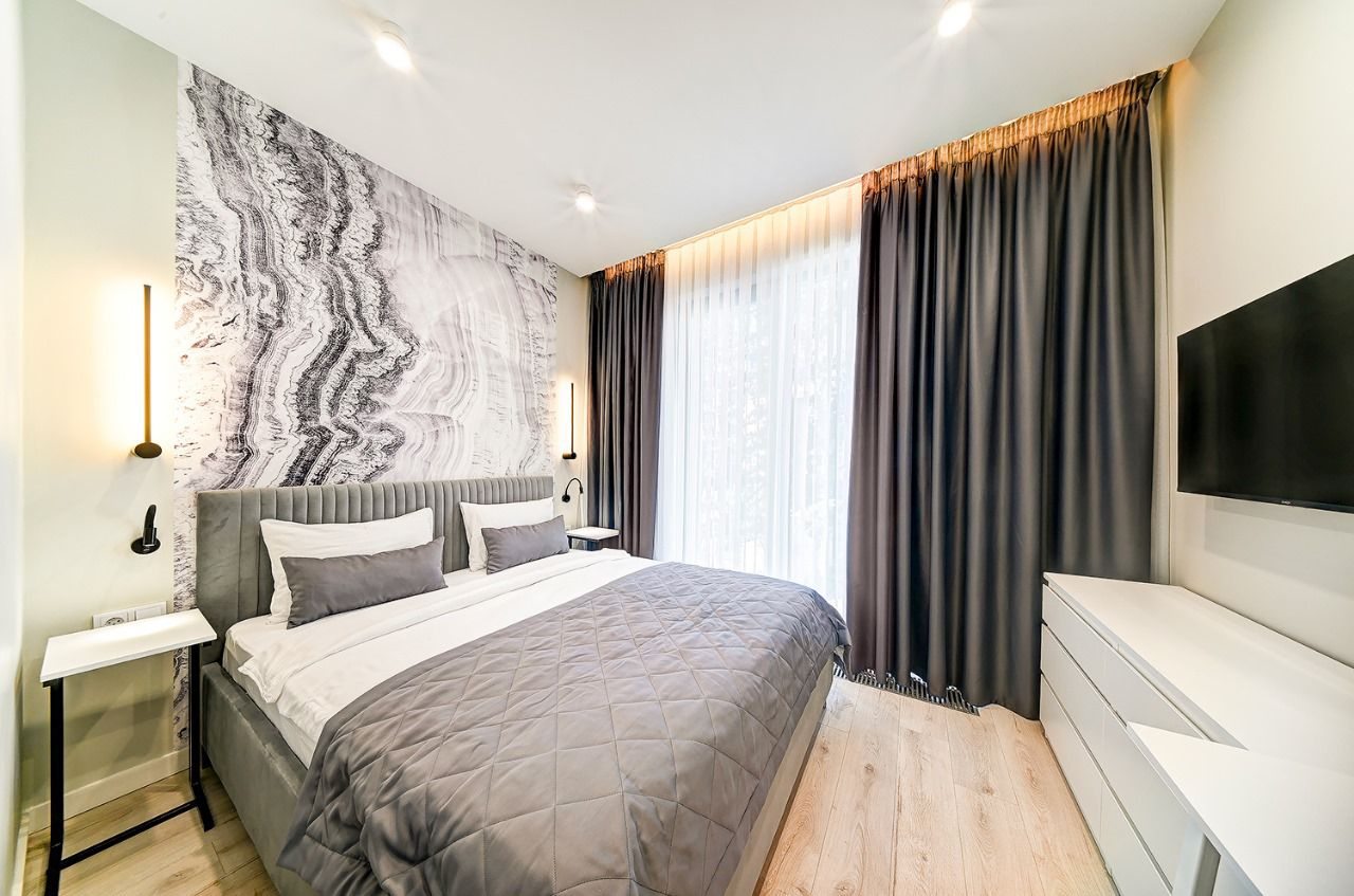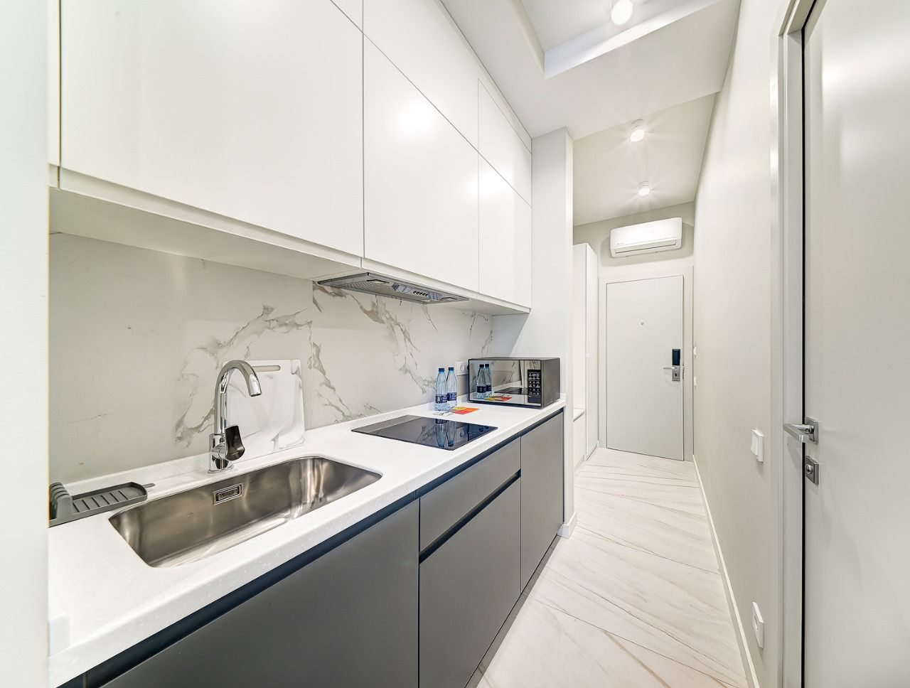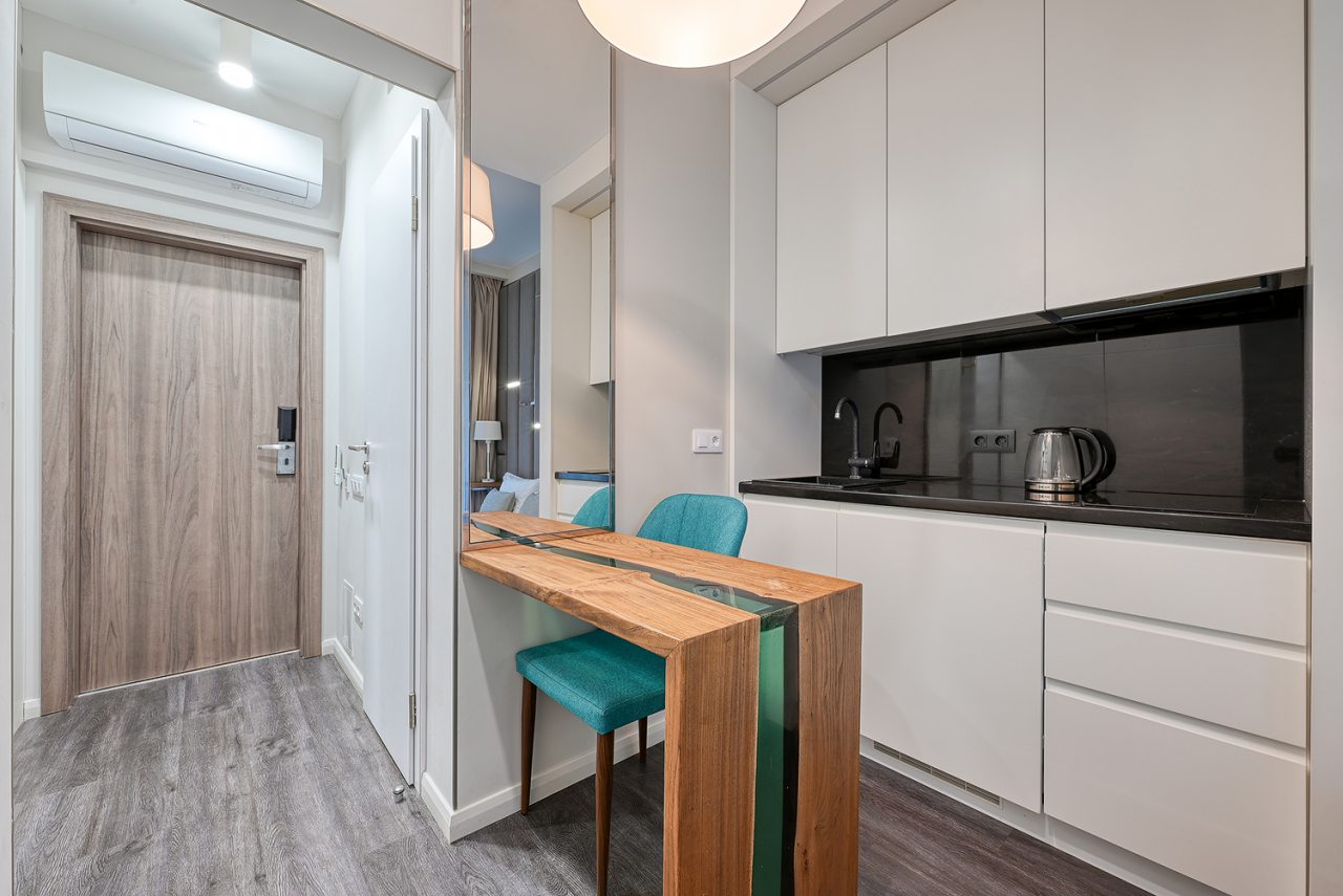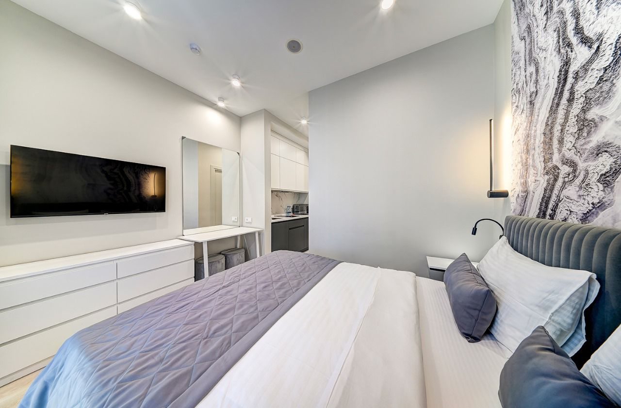 Красивый отель, расположенный на побережье Черного моря. В Сочи мы бываем часто, но в этом апарт-отеле остановились впервые. Выбрали размещение на двоих - двухместный стандарт. Пространство у нас было оформлено в приятных светлых тонах. Шкафов много, они все встроены в ниши, их практически незаметно. Но зато они очень вместительные. По стоимости вышло выгодно, для первой линии вообще шикарно.