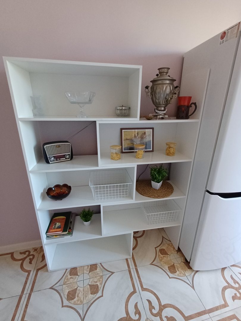 Уютные апартаменты, оформленные в светлых тонах. Смотрится такой дизайн очень ухоженно, будто подчеркивает новизну ремонта. Мебель удобная, без повреждений и поломок. Шкафы, тумбочки не менее удобны для использования. На кухне есть много тарелок и посуды, что позволяло нам готовить. Море находится в шаговой доступности, но нужно учитывать, что идти до него около 15 минут. Стоимость квартиры приемлемая, компенсирует все ее потенциальные недостатки.