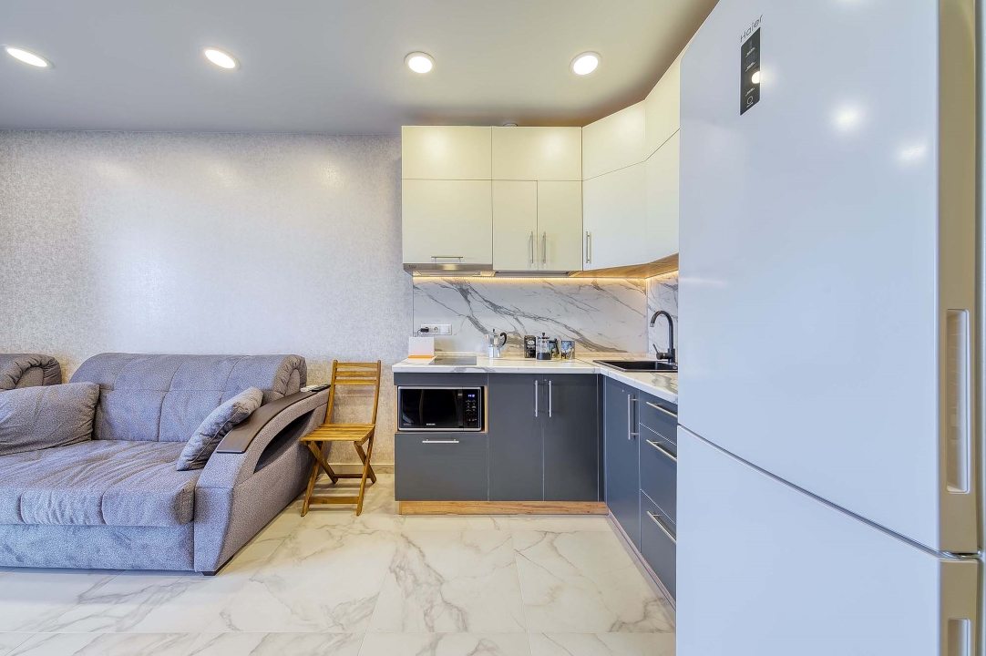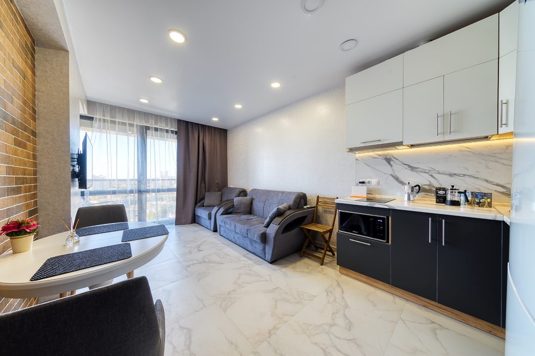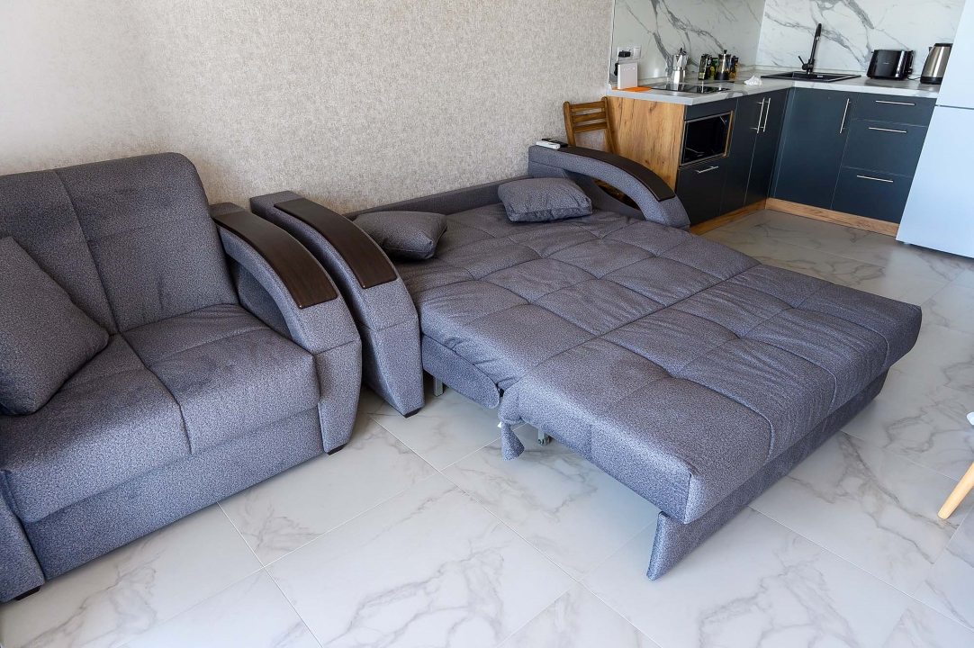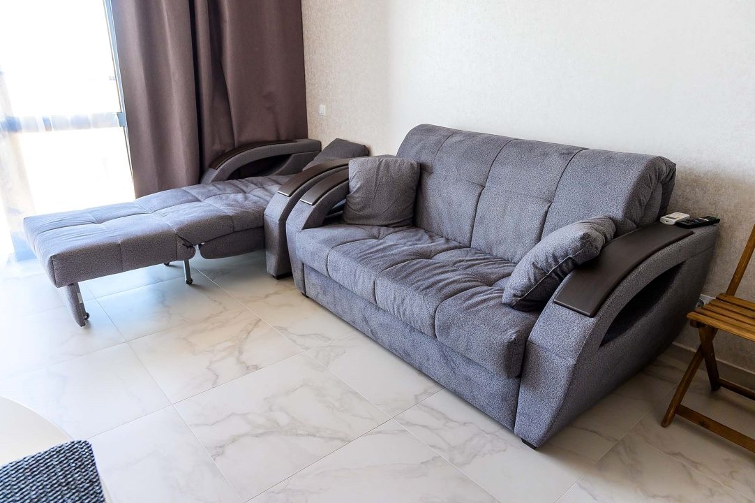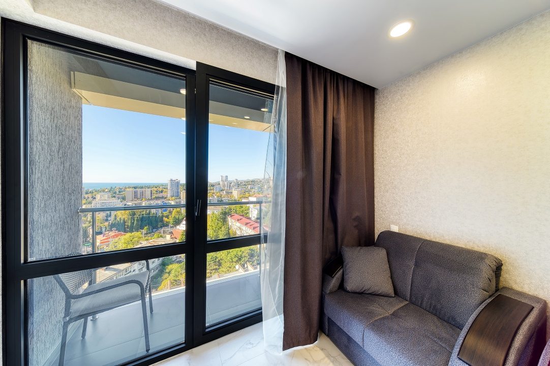 Отдыхая в Сочи, мы забронировали апартаменты в жилом комплексе Сокол. Это новый многоквартирный дом с шикарной планировкой. Квартира понравилась, она достаточно вместительная и с нее открывается вид на море. Диваны удобные, хотя каждый же день их нужно раскладывать. Иначе места остается мало. Кухонная зона вместительная, можно готовить любую еду. Панорамное окно открывает много света, из-за чего здесь намного уютнее. Отлично!