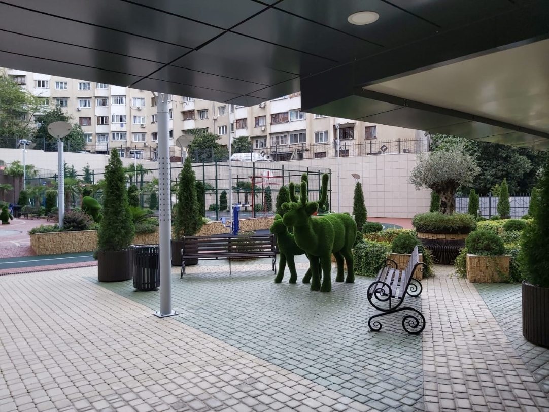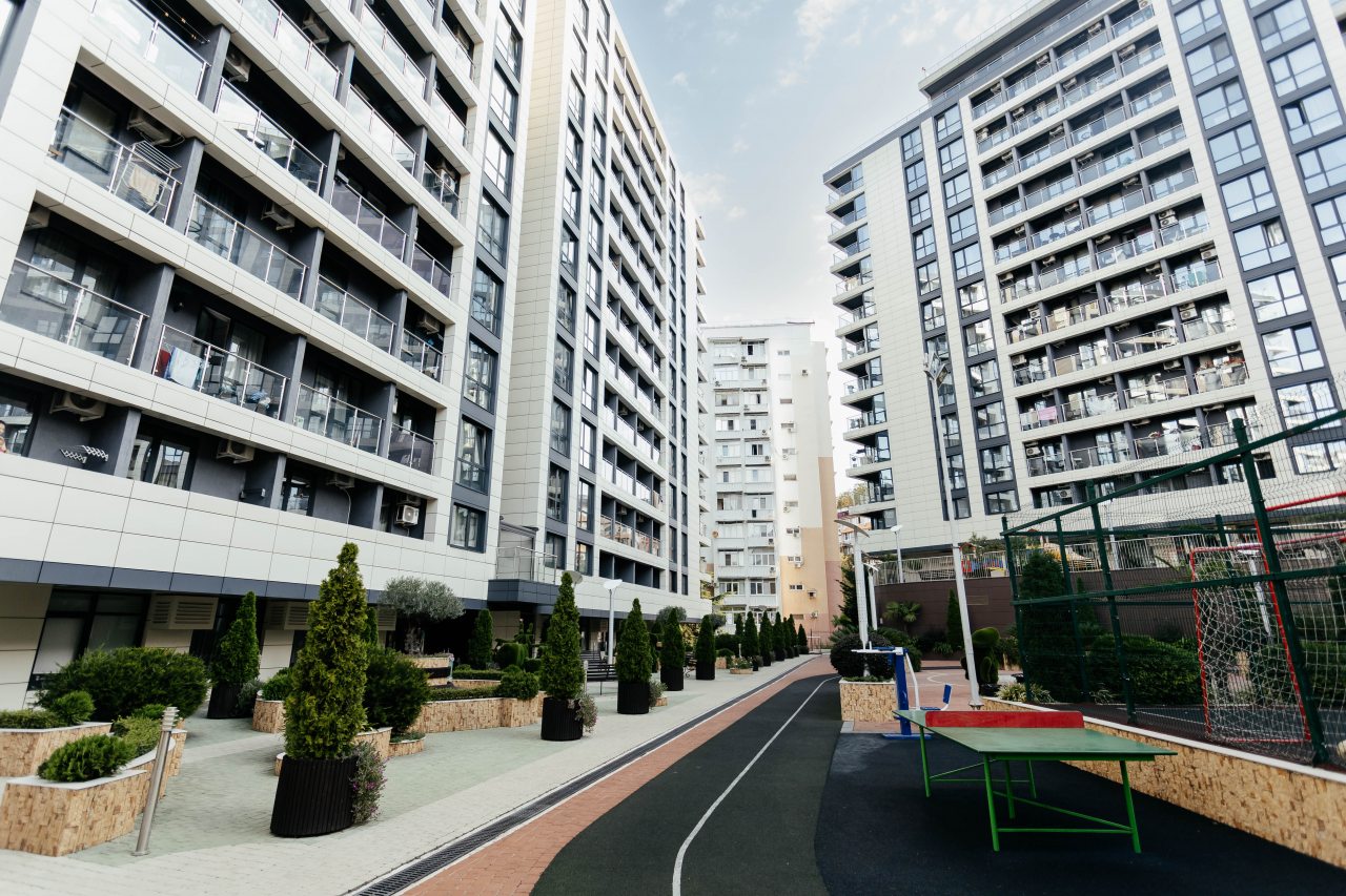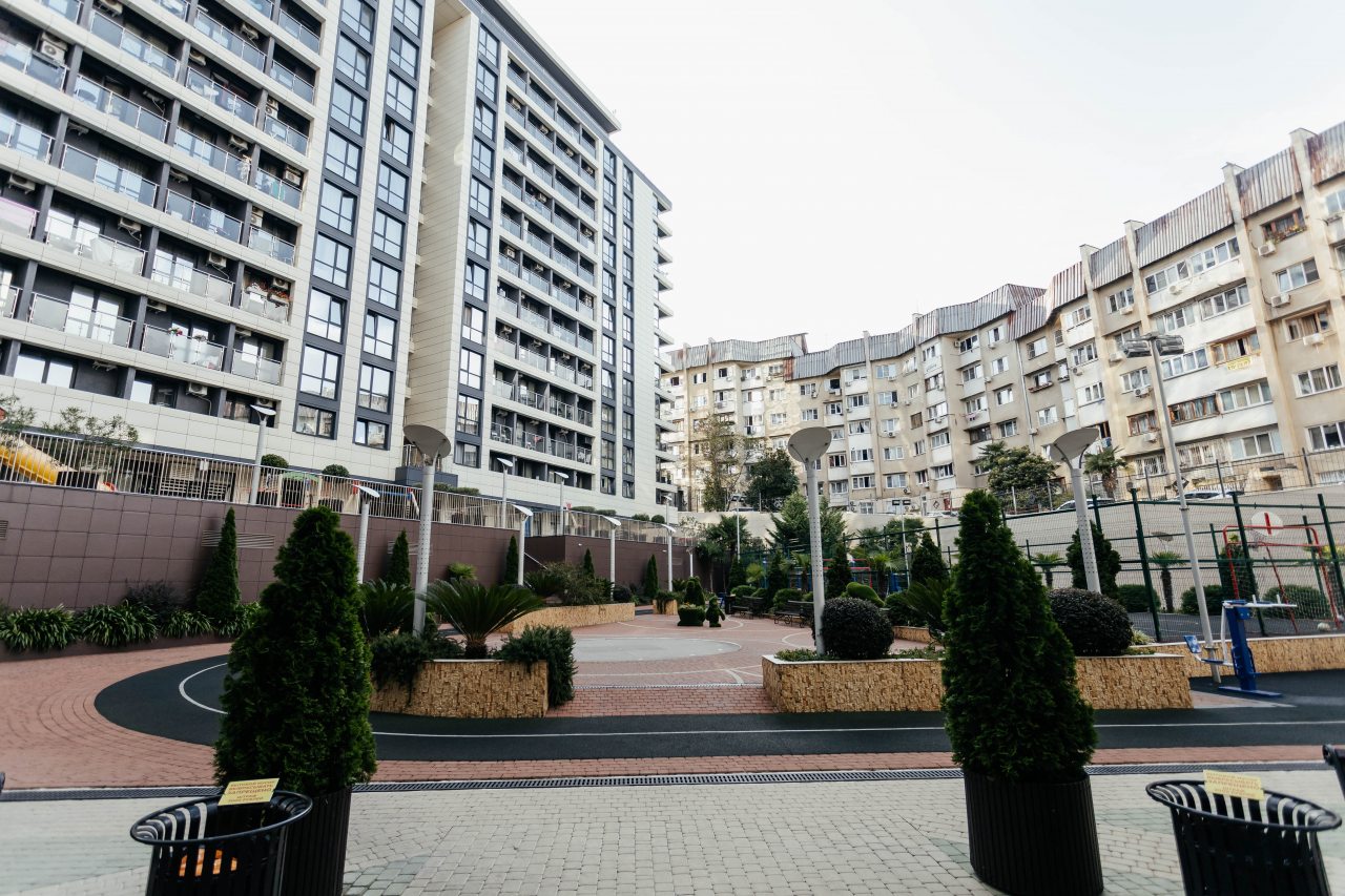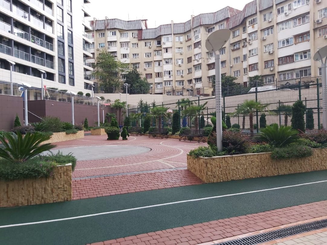 В Сочи мы выбрали вместо гостевого дома апартаменты. И это было очень удачное решение. Квартира оборудована абсолютно всем, что необходимо для комфортной жизни. На кухне много посуды и бытовой техники, в ванной есть стиральная машина и как положено имеются необходимые гигиенические средства. Море рядом, а территория всего ЖК ухоженная.