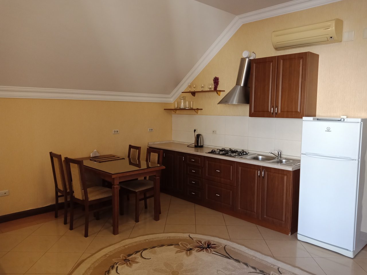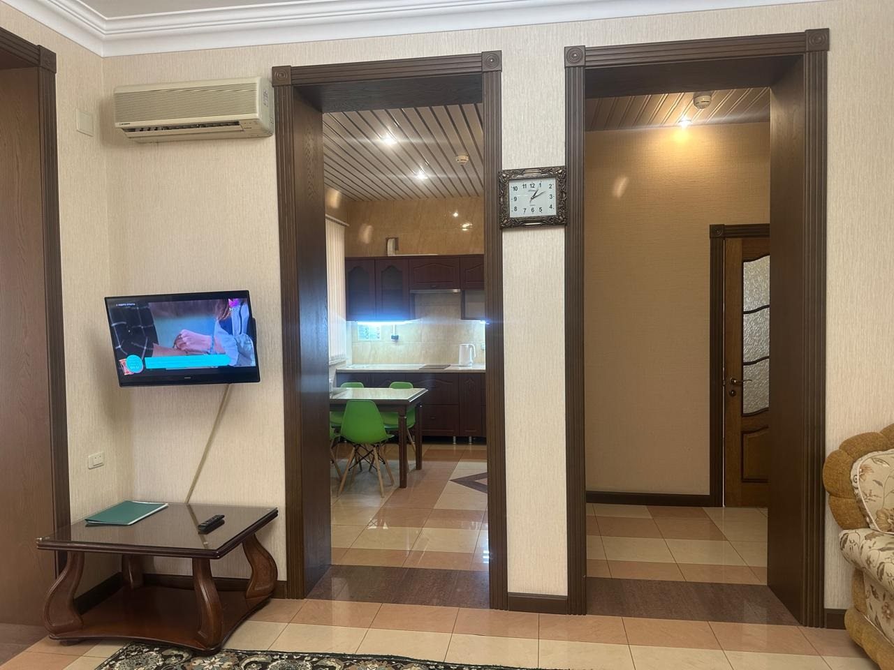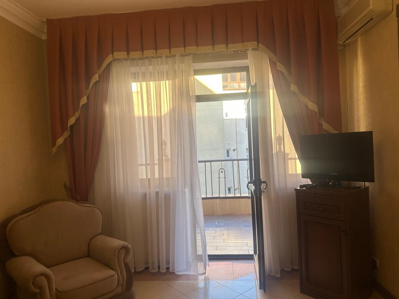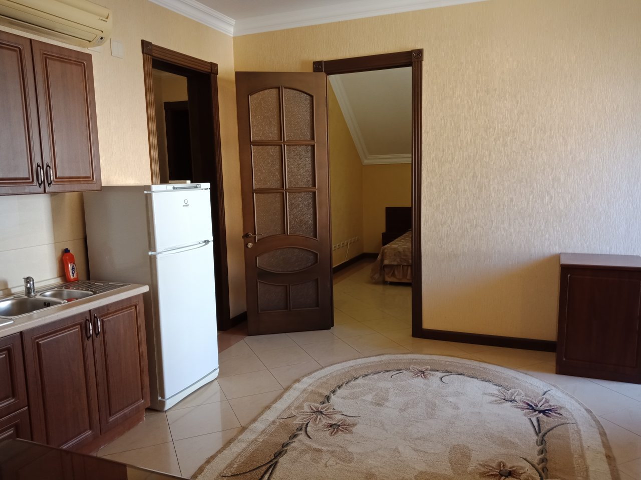Приехала поздно вечером, девочка на ресепшен встретил меня ,все рассказала ,ключи дали от комнаты ,кондиционер ,телевизор ,чайник ,и.т.д все есть дали тапки ,полотенце ,постельное ,в номере чисто ,дом красивый ,на улице столики .Спасибо большое девочкам .