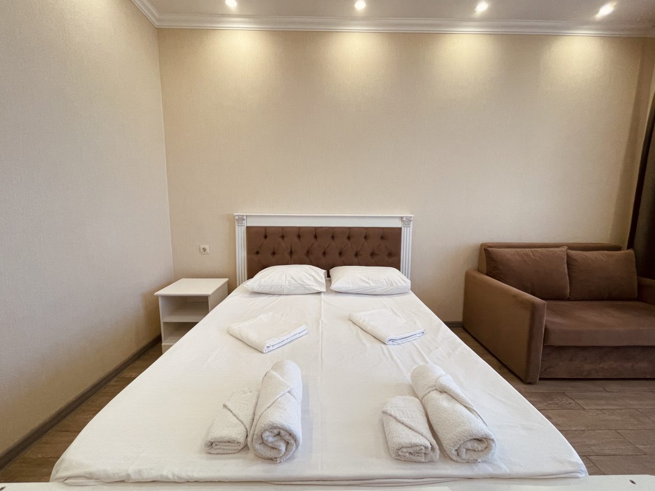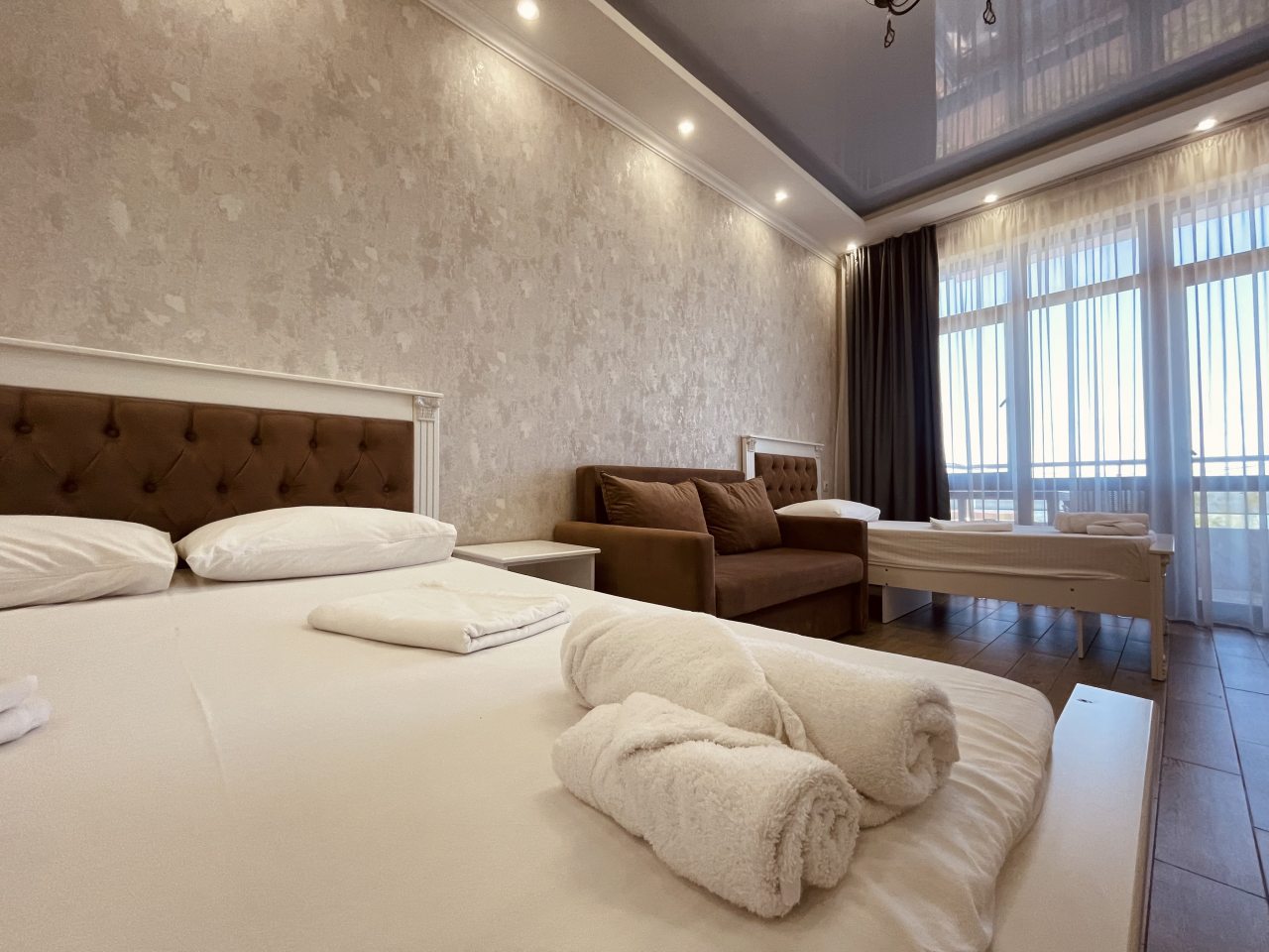 Отличный отель с удобным местоположением: 5 минут от жд станции Горный воздух, 5 минут до пляжа, 5 минут до магазинов Пятёрочка, рыночка с фруктами. В отеле есть вс необходимое для комфорта: кондиционер, удобная кровать. Вид из окна на море. Отель рекомендую.