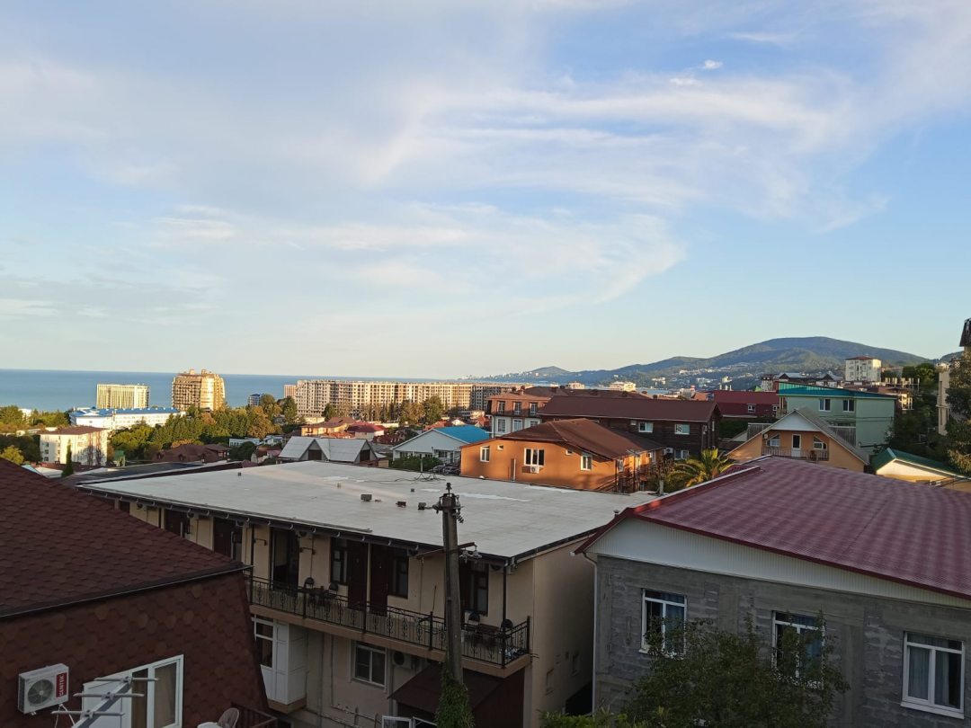 Расположен в курортном поселке Адлера. Недалеко от пансионата Изумруд. Прекрасный вид с терассы, где можно встречать рассвет и заат , любуясь на море и Красную Поляну. Очень доброжелательный персонал. Заселили вопреки всем правилам в 7 утра, т к. ранний прилет. Всегда чисто в общей столовой и на терассе. В шаговой доступности Пятёрочка и кафе с национальной и европейской кухней. Порадовали завтраи с домашними блинчиками и сырниками, как у мамы. Рекомендую. Планирую вернуться на следующий год.