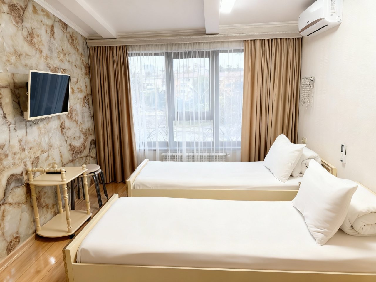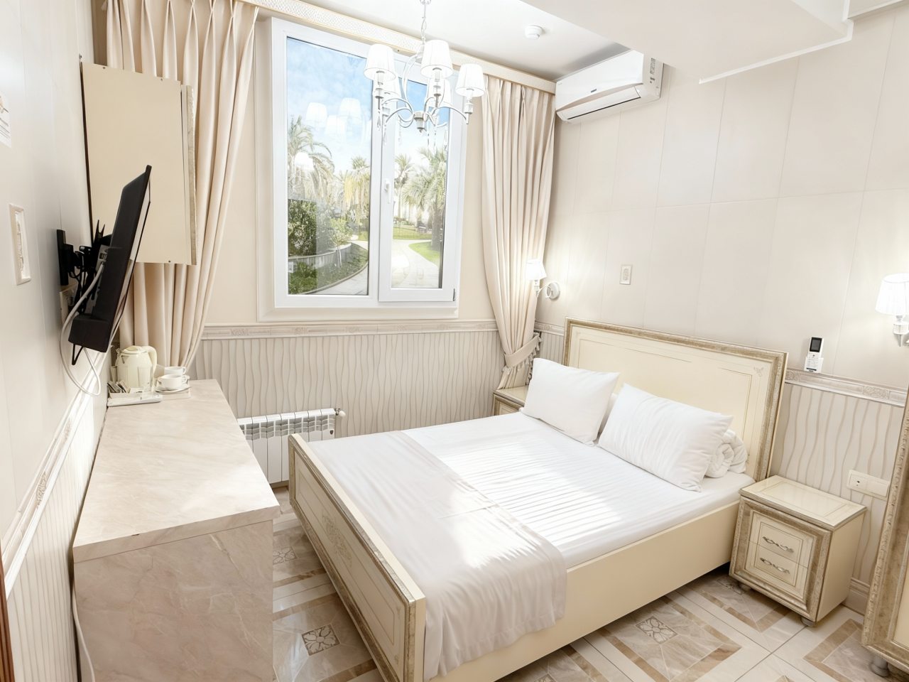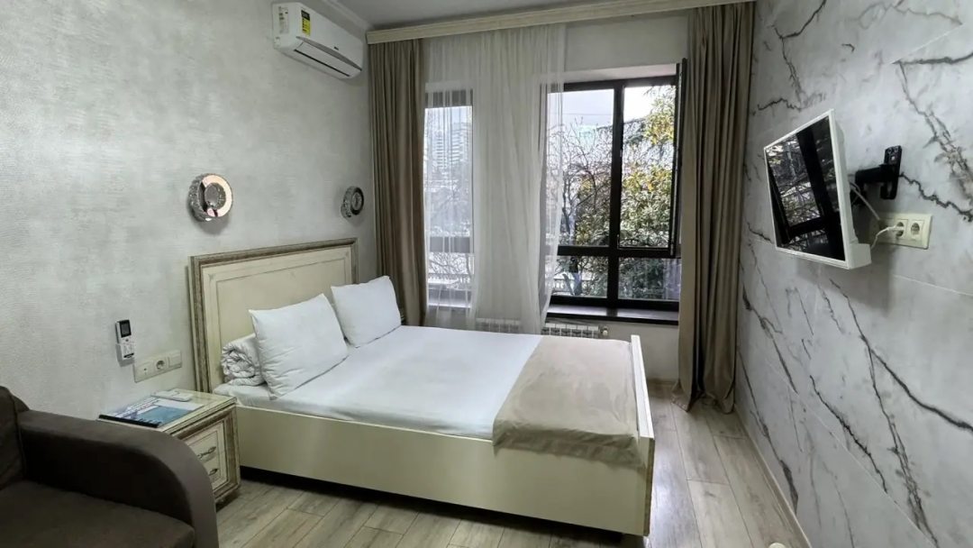 Это мой любимый отель в центре Сочи.Атмосфера уюта и покоя.Девочки на ресепшен очень милые,доброжелательные,и всегда готовы помочь в решении любого вопроса.Заселение быстрое,номера всегда готовы ко времени заезда.Расположение отеля отличное-очень много достопримечательностей в пешей доступности.Так же рядом остановка общественного транспорта.Удобные матрацы,хорошая звукоизоляция, всё необходимое в номере.На мой взгляд,придраться не к чему абсолютно.Для своей ценовой категории это просто топ.