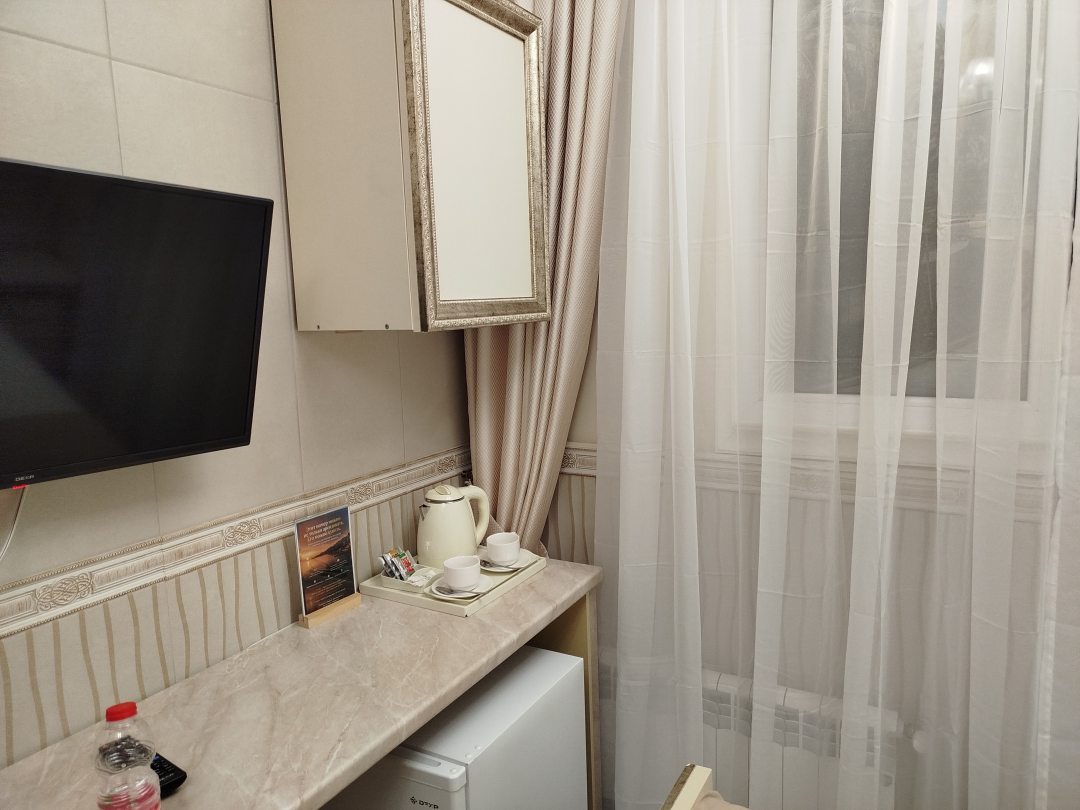 Уютный,чистый,комфортабельный отель.Самый лучший,на мой взгляд,в своей категории в городе.Прекрасное расположение,отлично оснащенные номера,хорошая уборка.Работающие полотенцесушители(кому как,а мне это важно)Номер без окна-оно как декоративный элемент присутствует,в принципе))Работники отеля-как радушные родственники,которые ждали тебя в гости)))Рекомендую,очень душевное место.