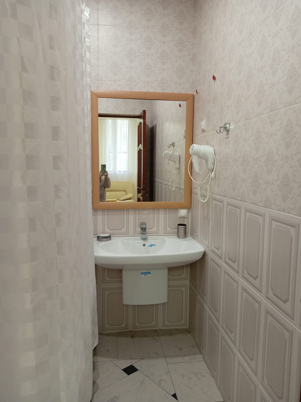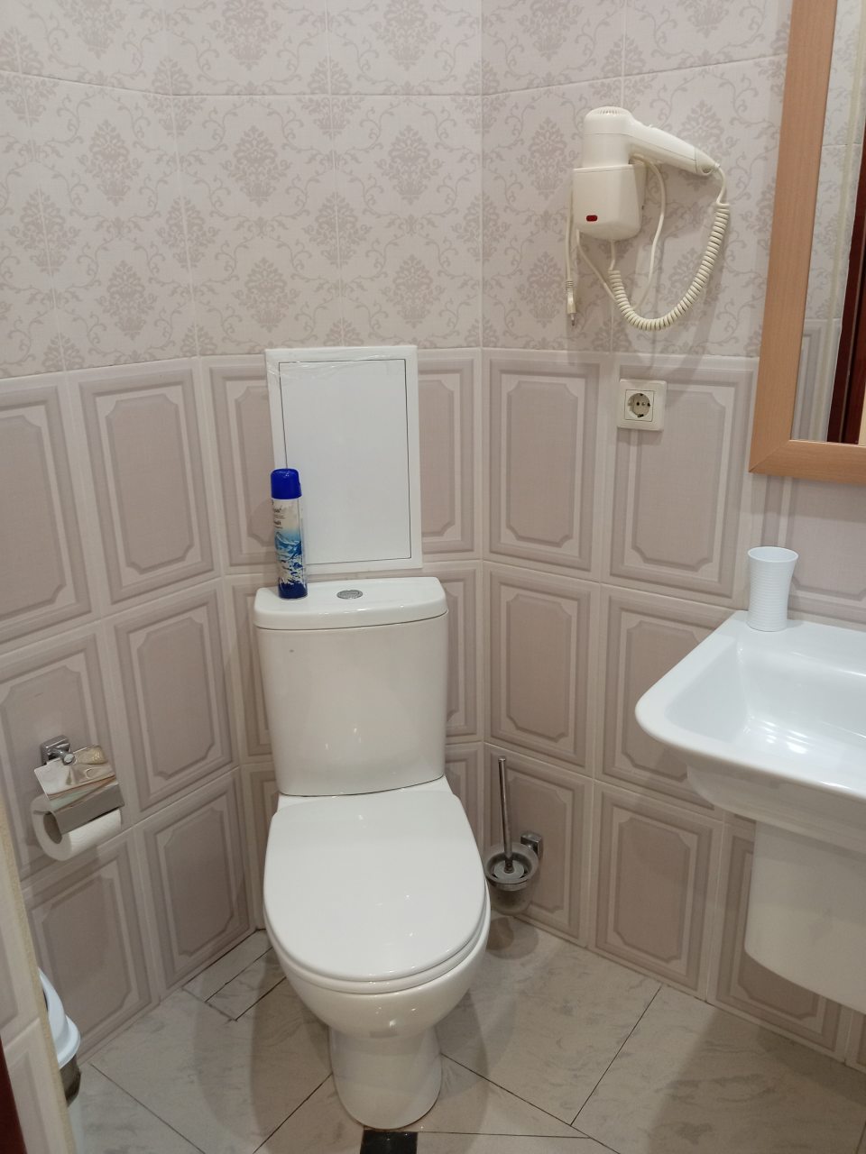 В санузле ничем не пахнет, всё чисто, красиво. Есть полотенцосушитель электрический. С водой проблем нет.