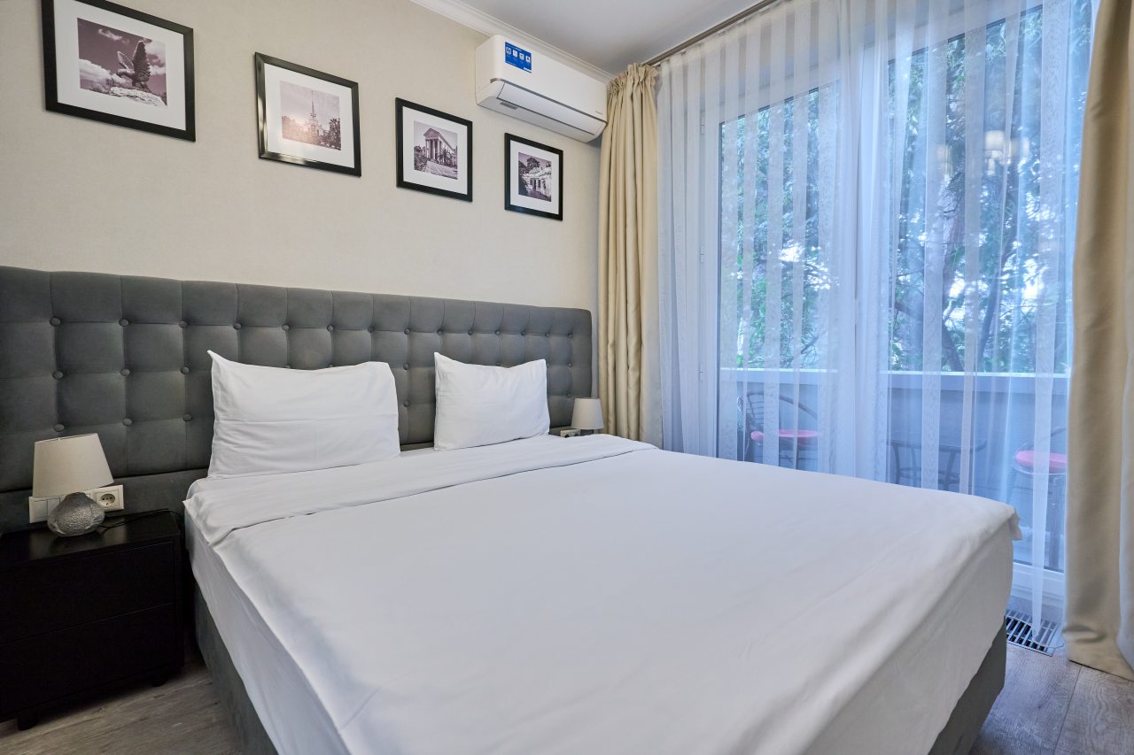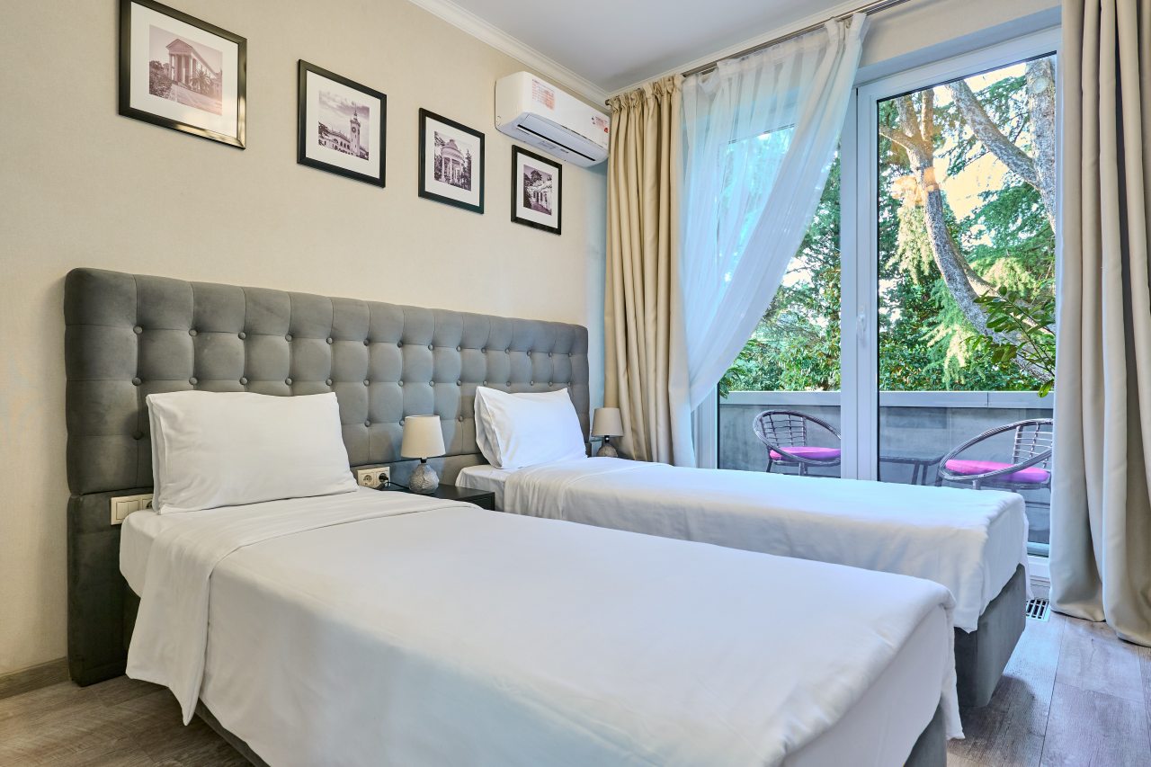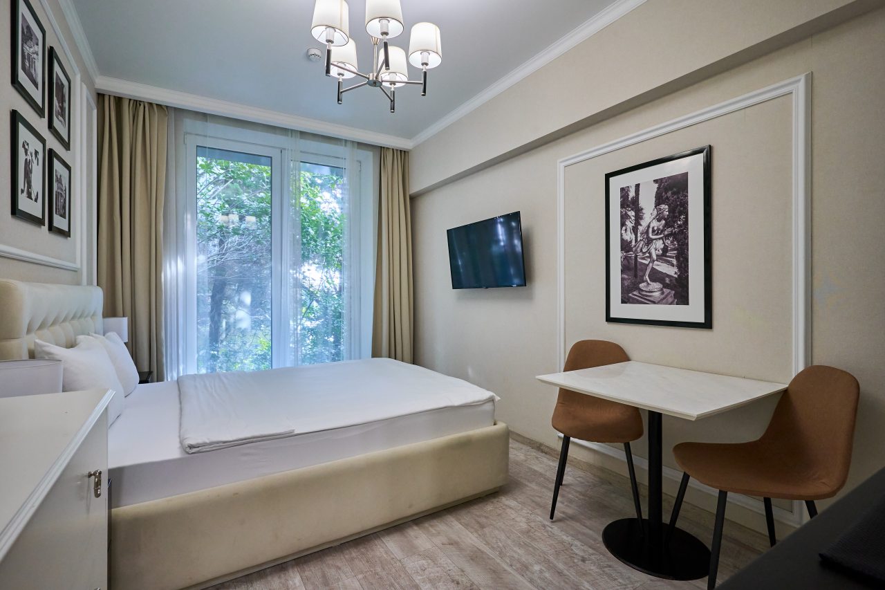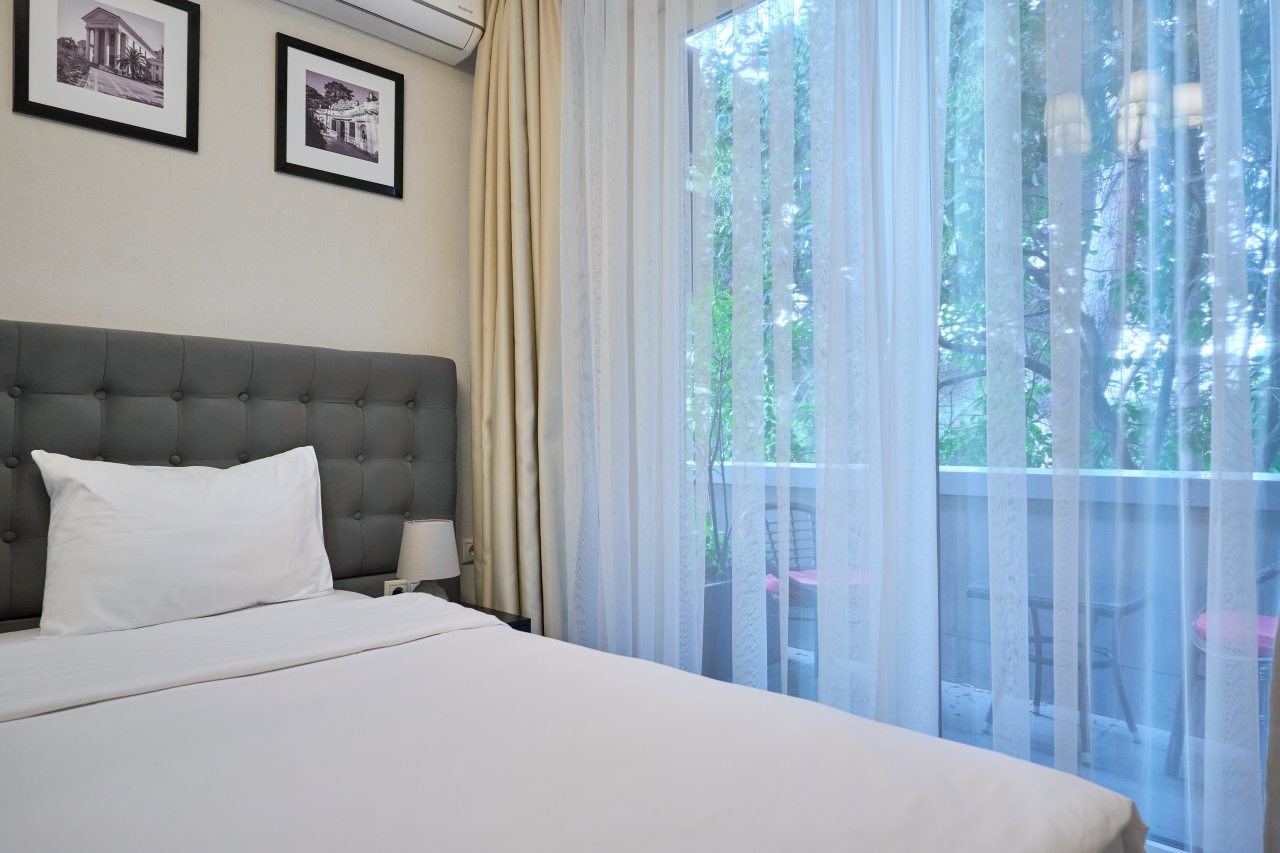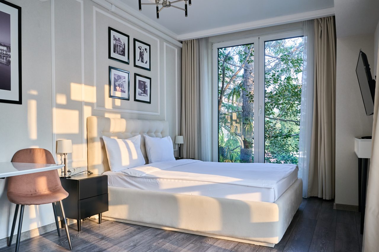 Бутик-отель хорошенький. Находится в центре Сочи. Недалеко пляж, канатная дорого, Дендрарий. В другие места также легко добраться при желании. В номере приятная кровать, необходимая техника. Даже стиральная машинка и СВЧ-печь была, что просто супер. Завтрак на выбор из нескольких блюд. Еда вкусная.