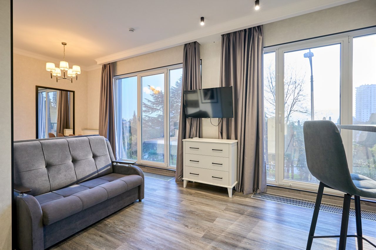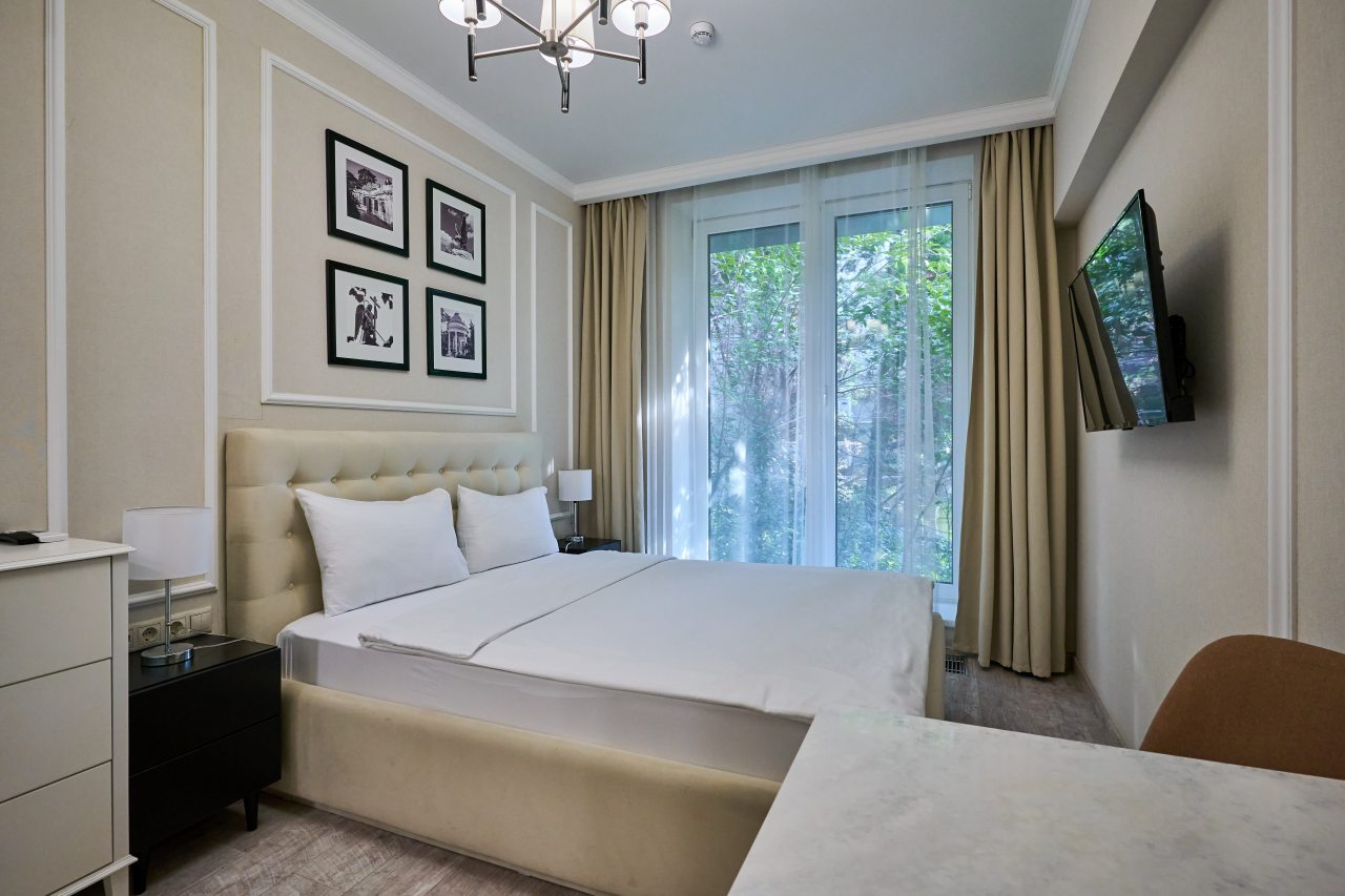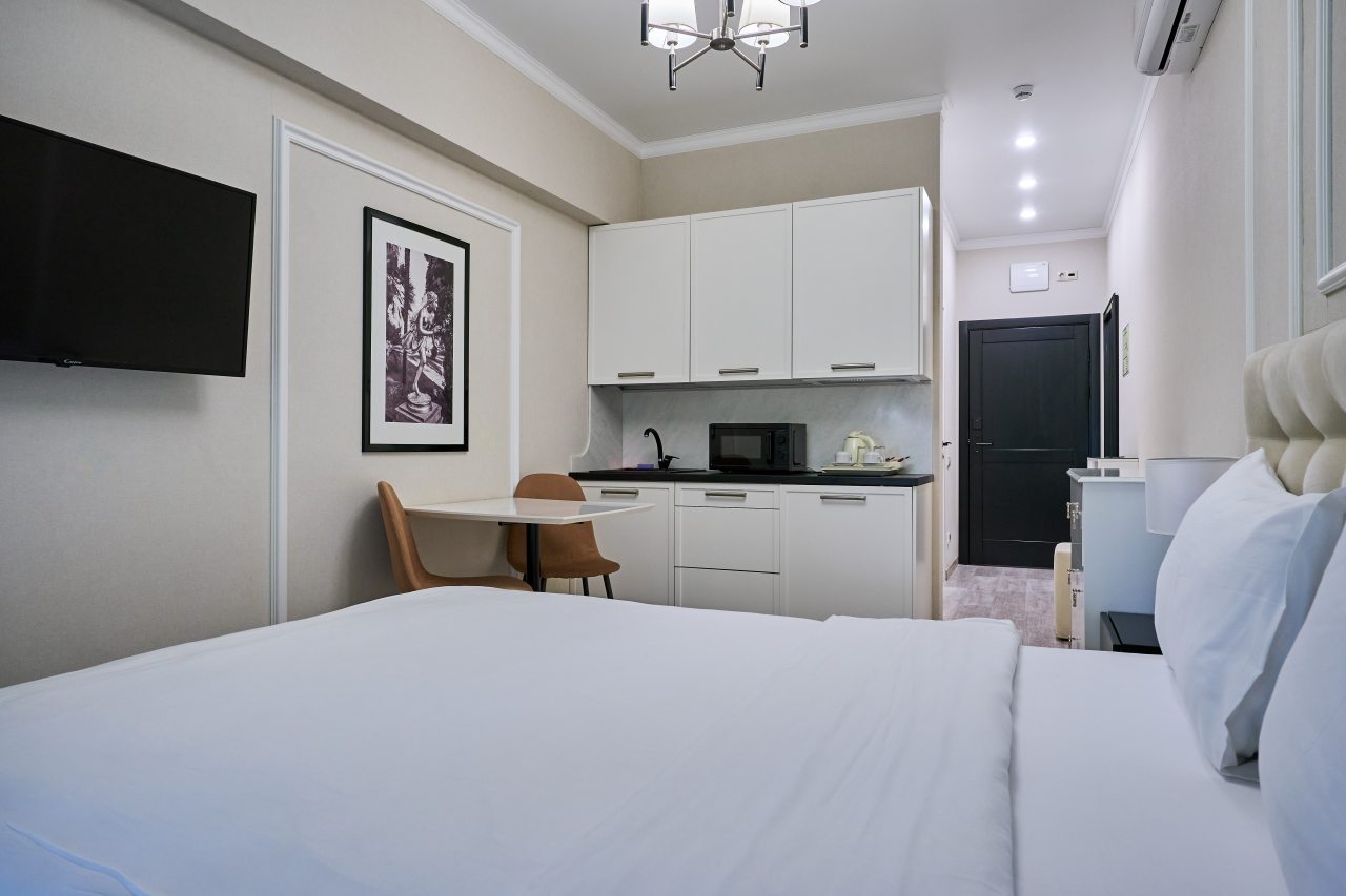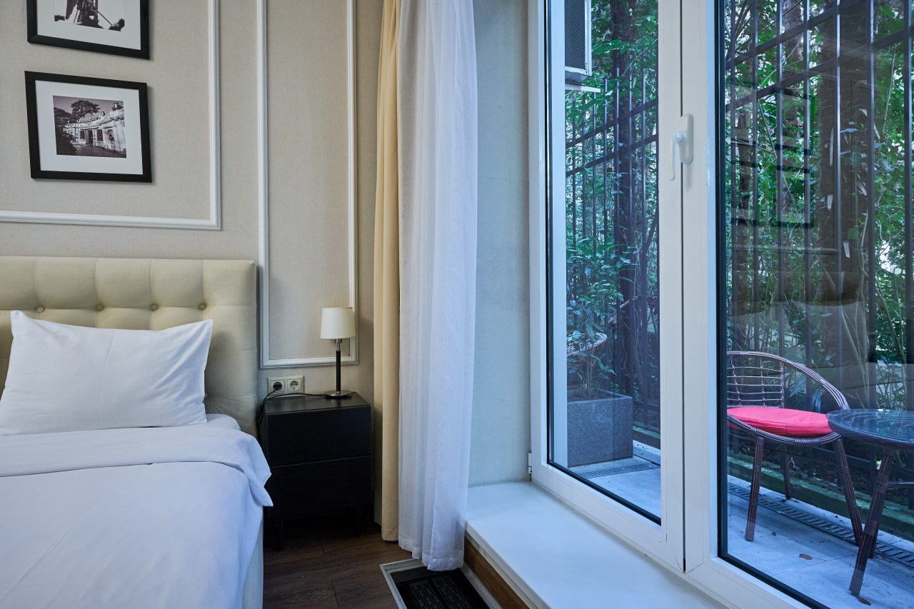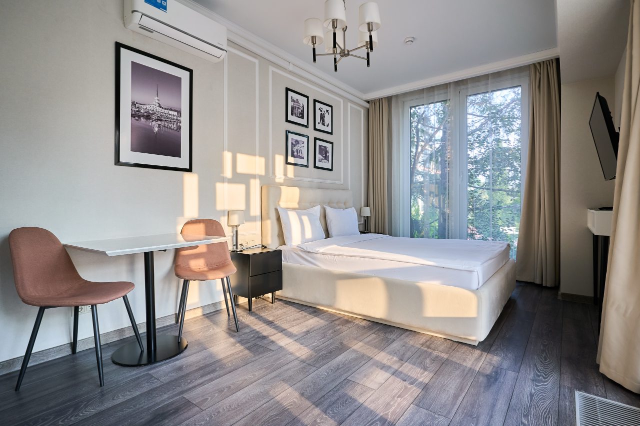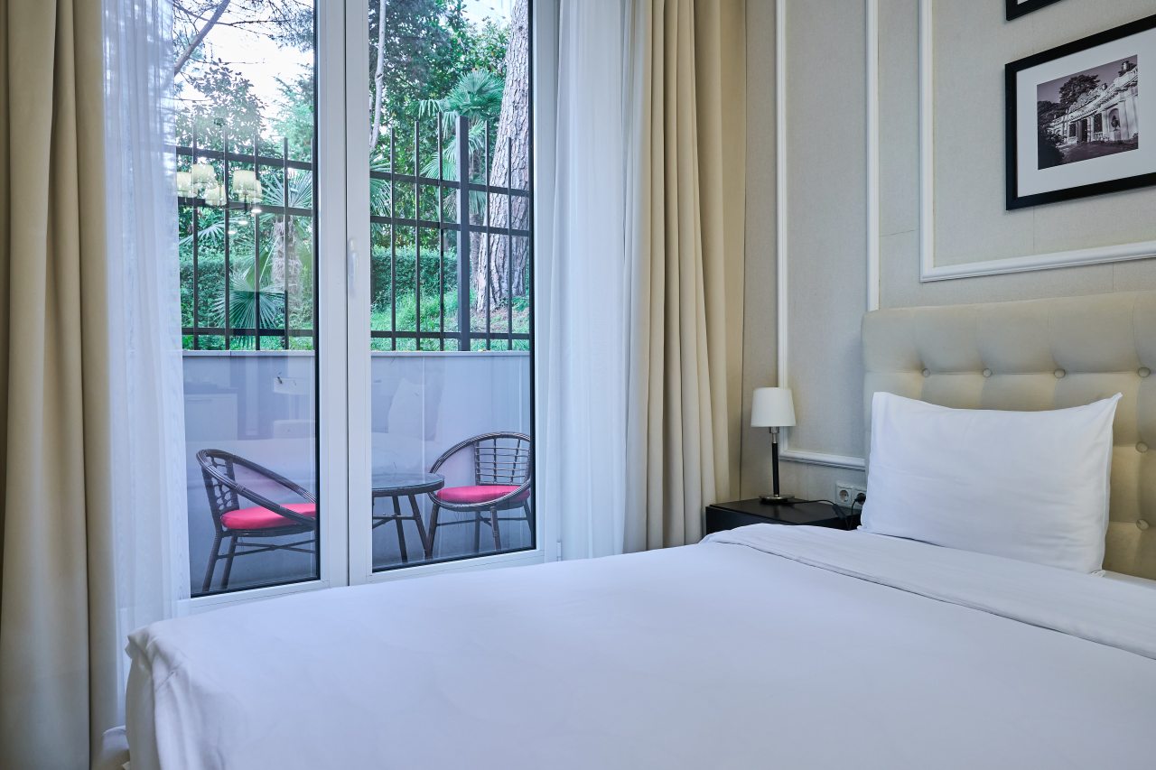 Бутик-отель хорошенький. Находится в центре Сочи. Недалеко пляж, канатная дорого, Дендрарий. В другие места также легко добраться при желании. В номере приятная кровать, необходимая техника. Даже стиральная машинка и СВЧ-печь была, что просто супер. Завтрак на выбор из нескольких блюд. Еда вкусная.